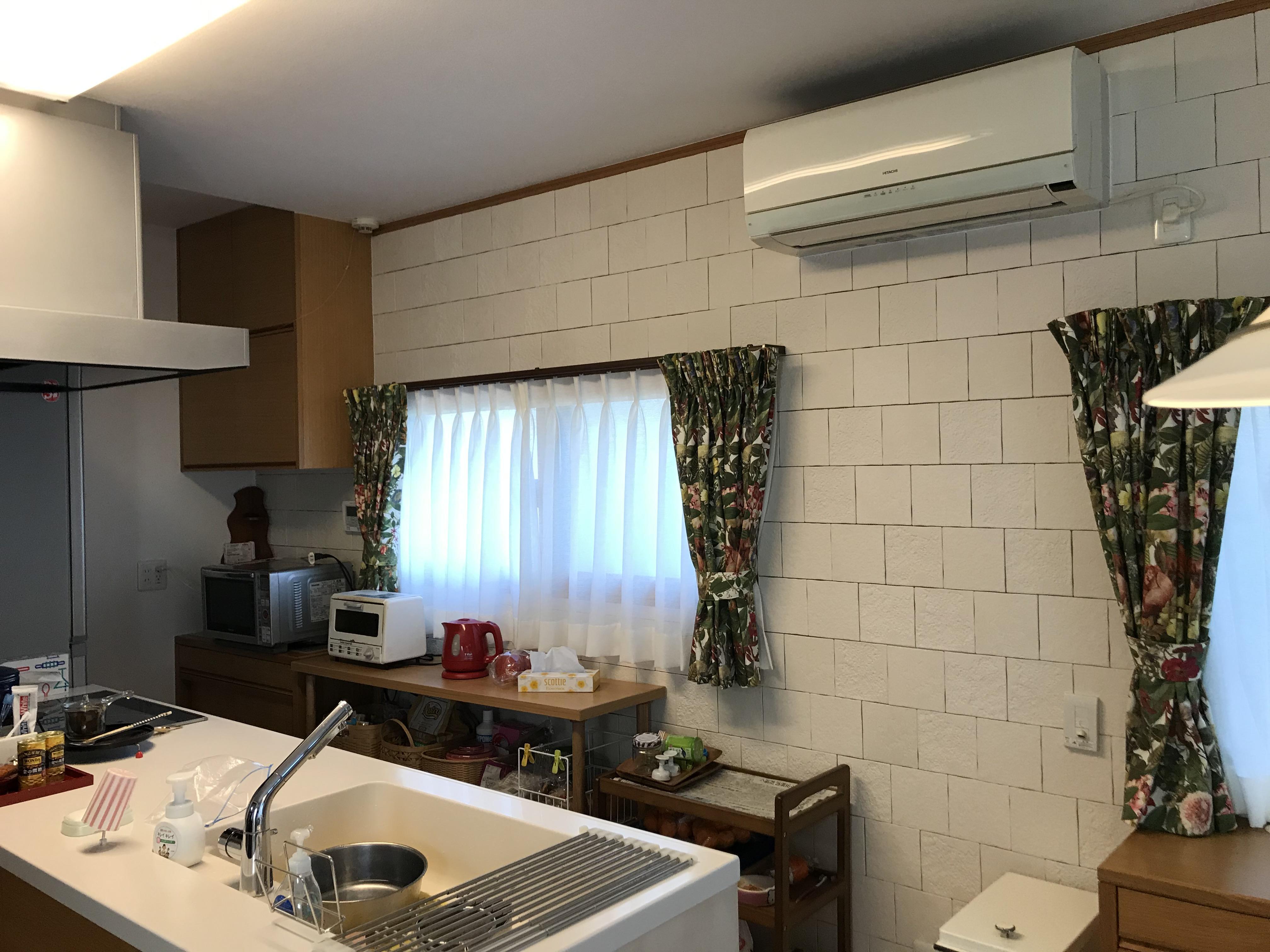 天井・壁のビニルクロスの張替えも全体行い、カーテンも取替えしたいとの事でした。