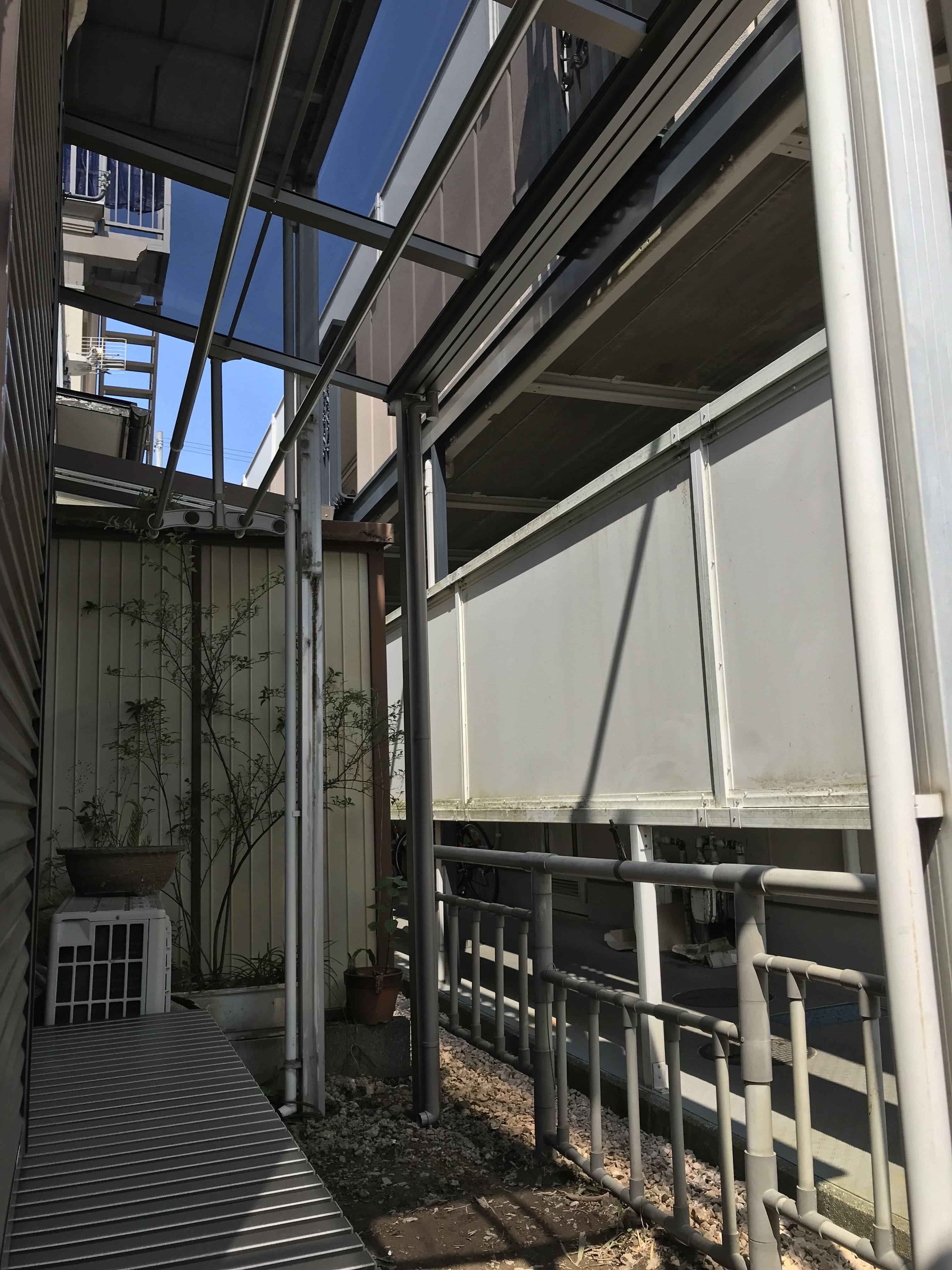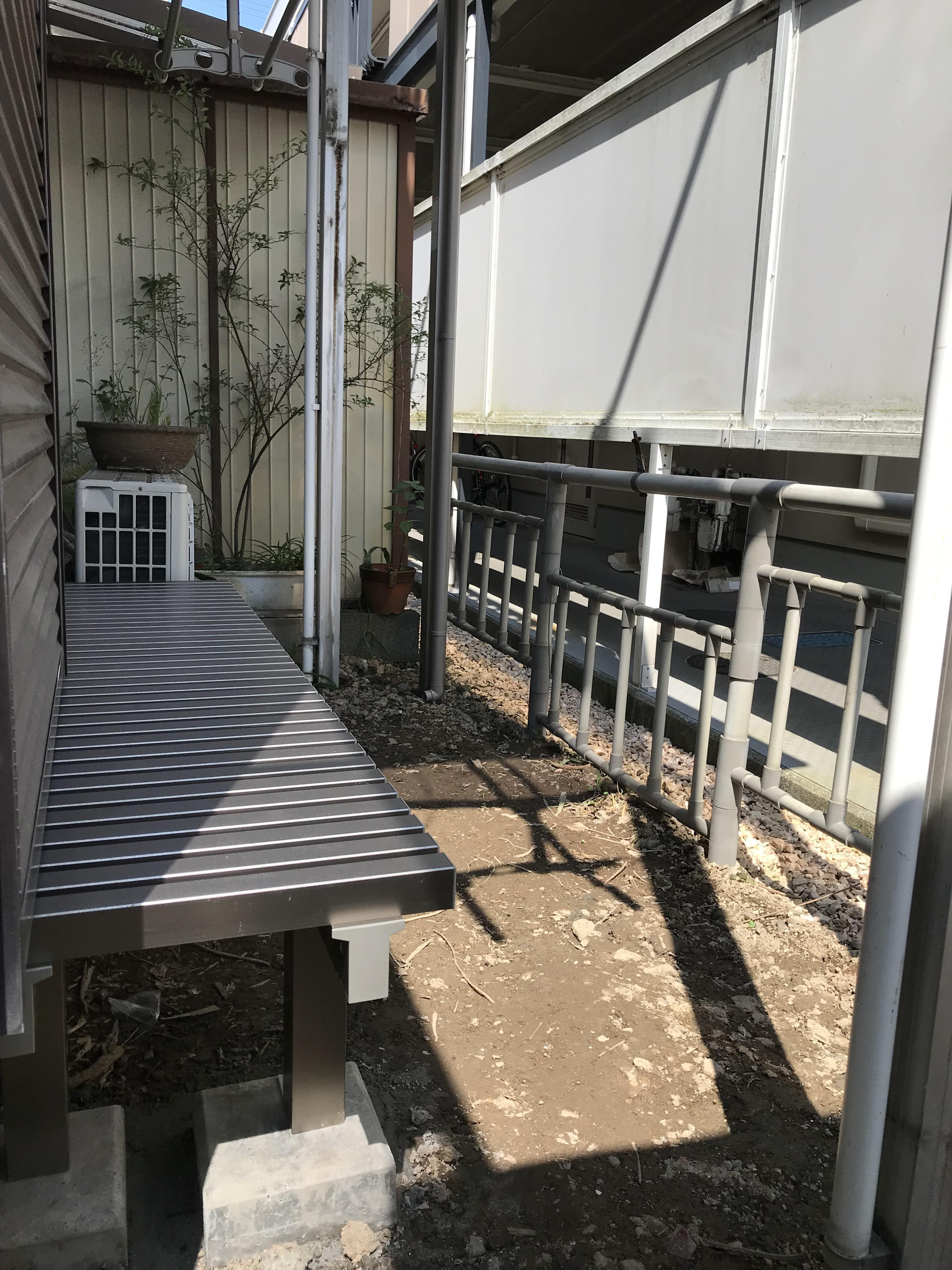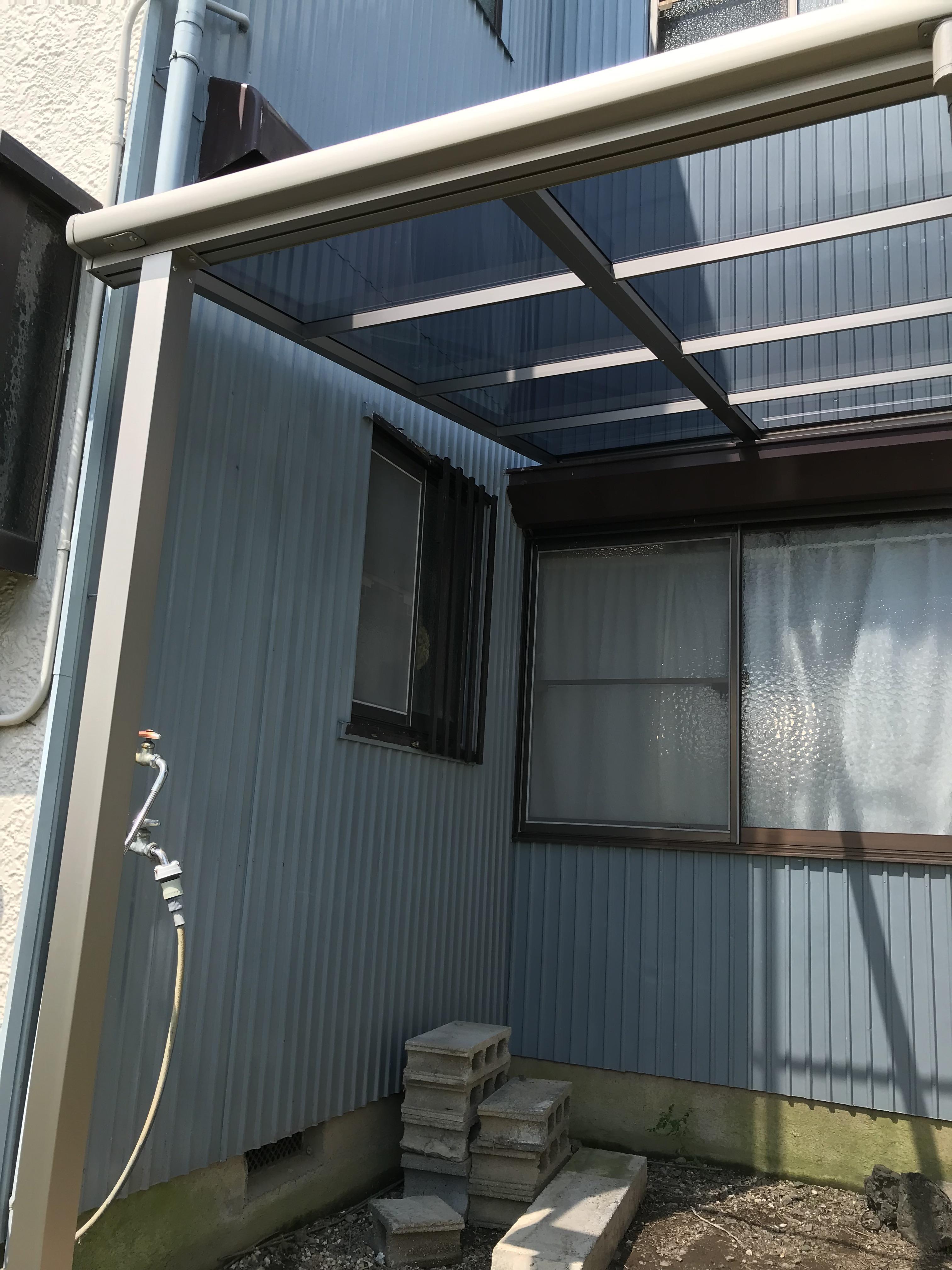 テラス屋根工事をさせていただきました。昔自分で単管パイプで組んだベランダや大工さんが作ったテラスなど、ご高齢になり今後何かあっても自分では治せない部分を金額も手頃で傷みもすくないアルミの既製品テラスに交換させていただきました。