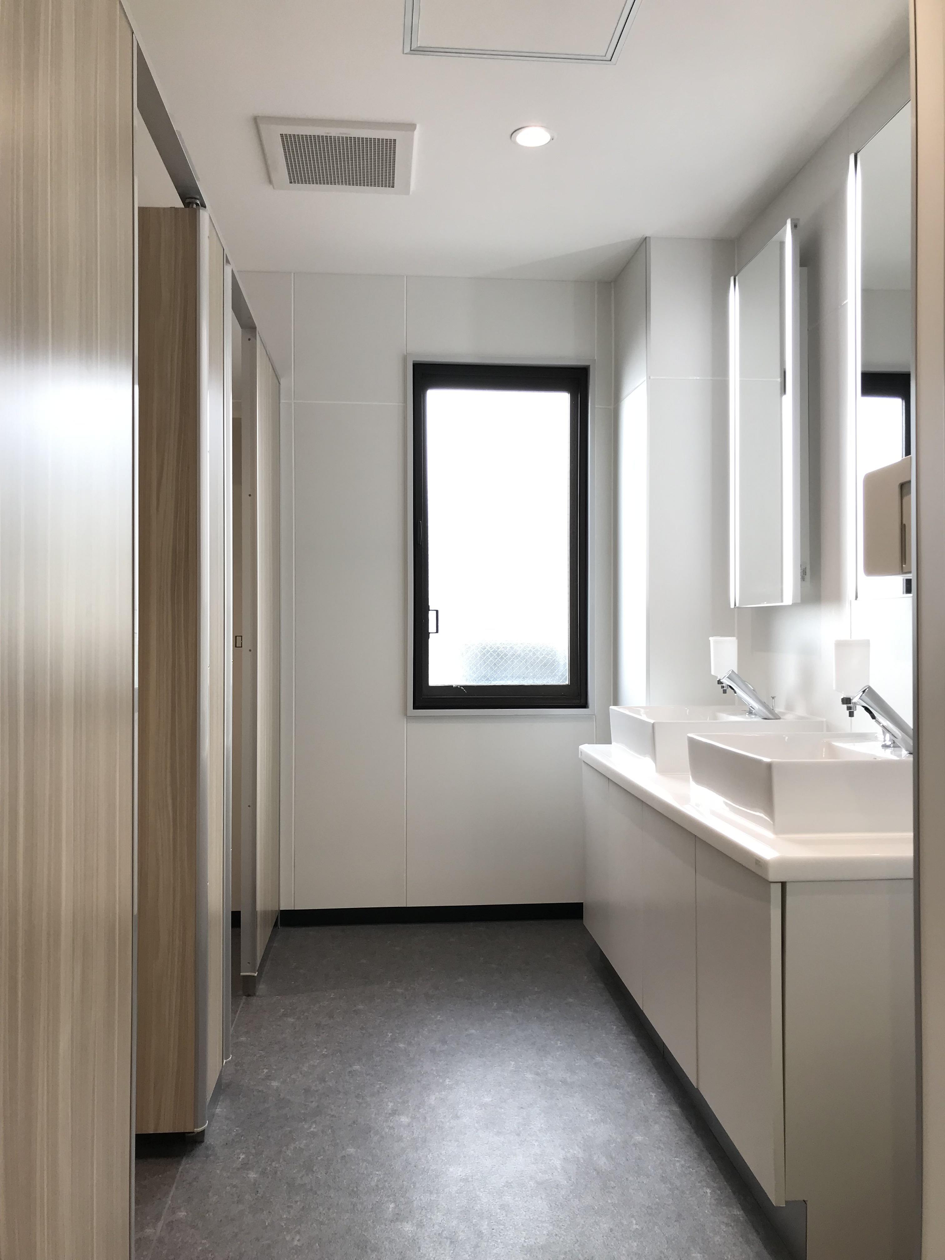 事務所トイレのリノベーション工事です。スタッフの皆様のモチベーションを上げる為にトイレを快適に過ごせる場所としたいとの事でした。とても喜んでいただきました。ありがとうございます。