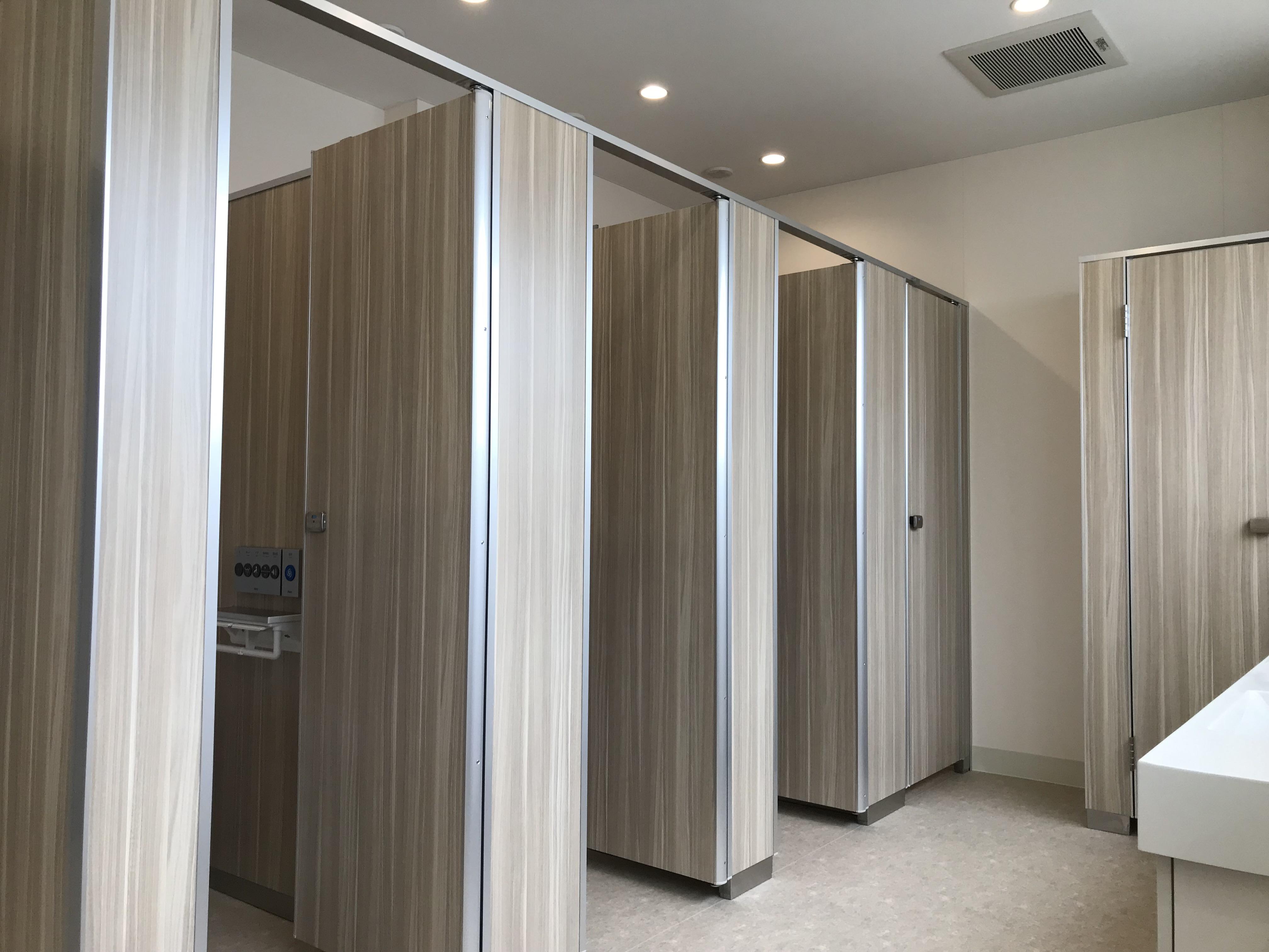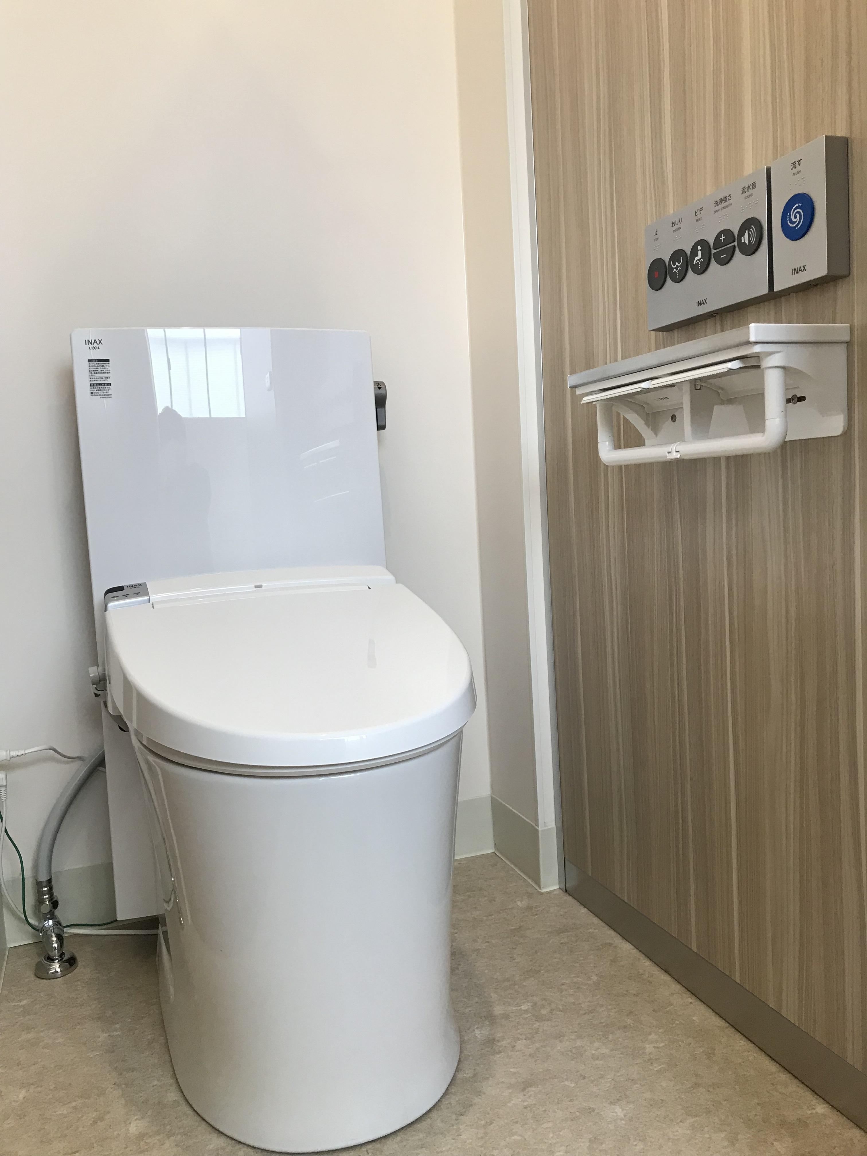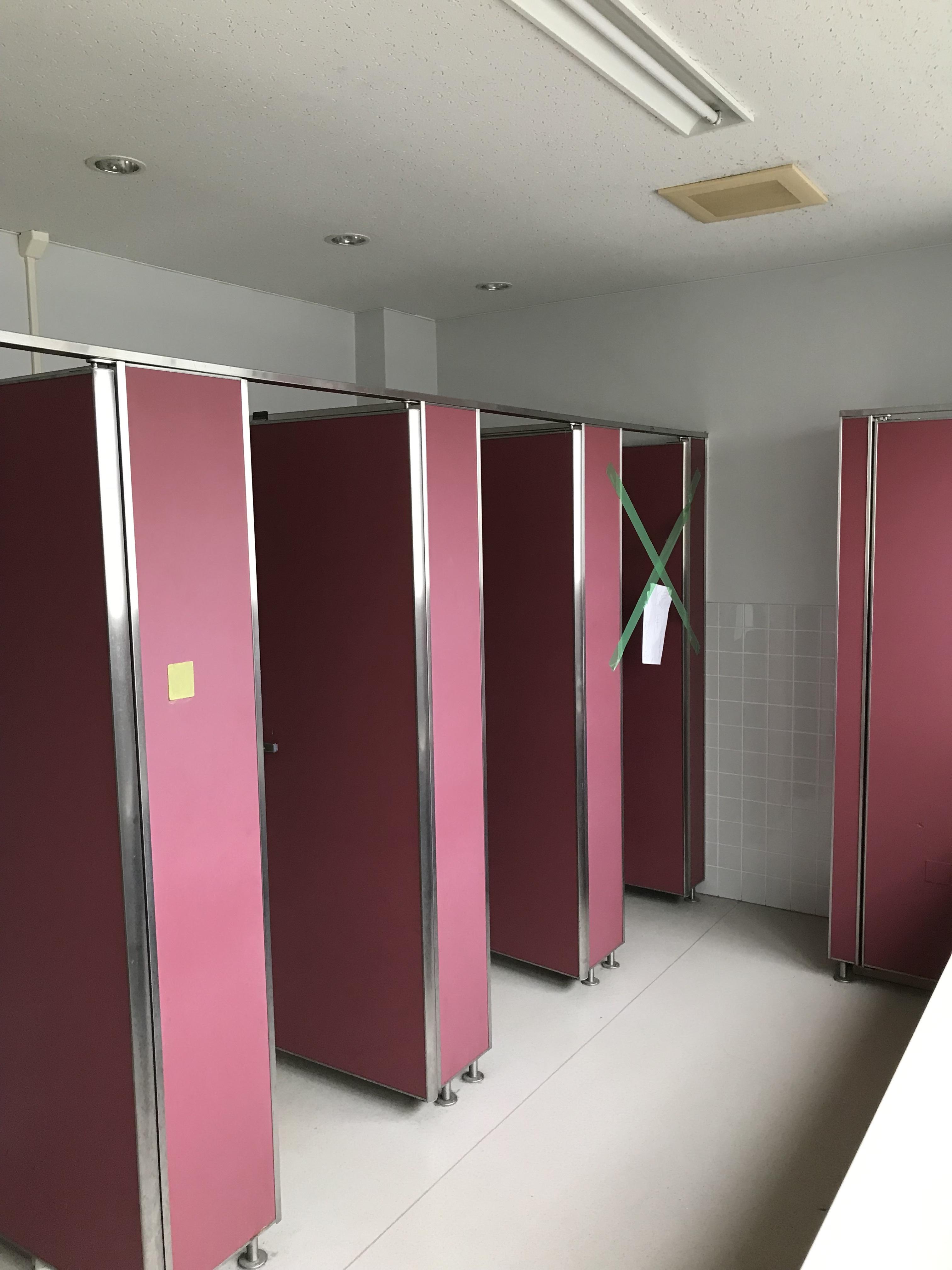 学校ですので管理しやすくなっております。リモコンも壁から勝手に外せないようになっており、かつ 電池も必要あません。パブリックな空間にとても合理的です。