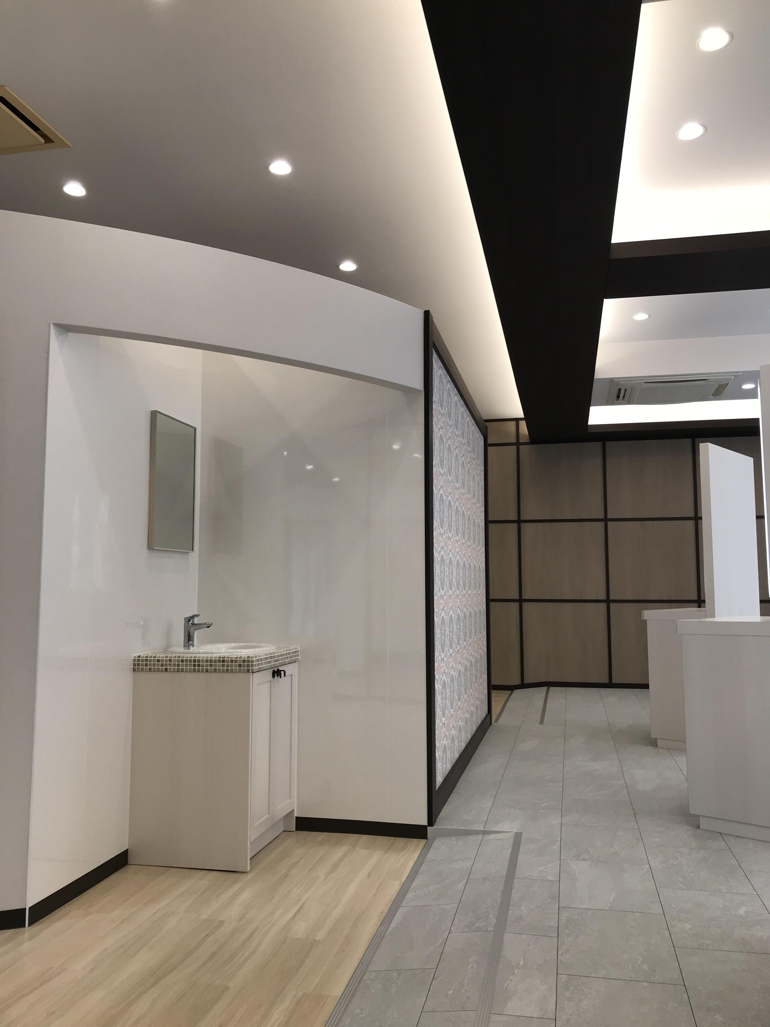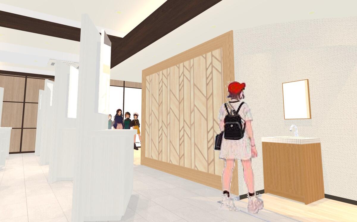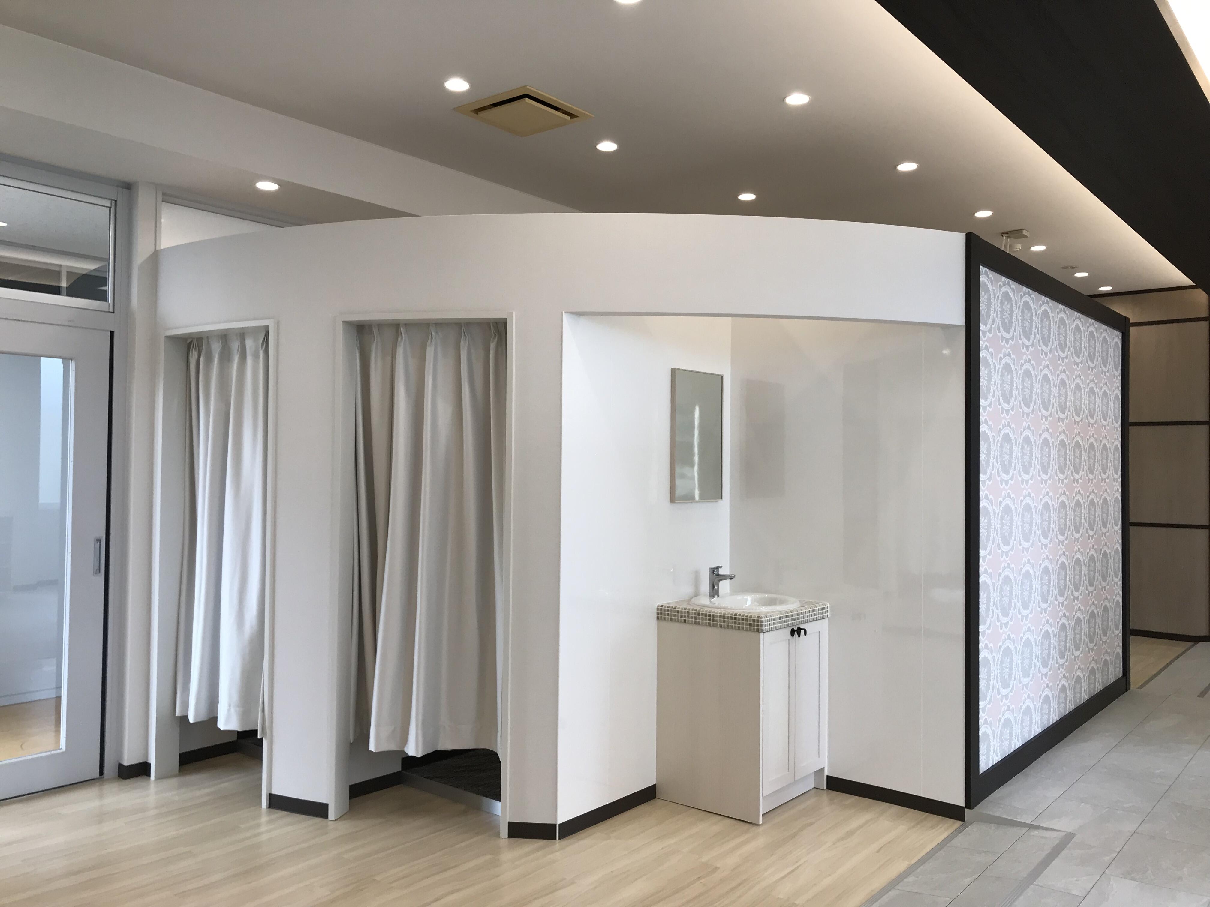 今まで多目的教室として利用されていた空間を、生徒さんたちが休み時間などに利用できるパウダールーム&更衣室に改修しました。 将来の理容・美容師さんたちの学校ですので資格をとり将来働く場所として見ても遜色のないパウダールームを考えました。 綺麗にできあがりとてもうれしいです。
