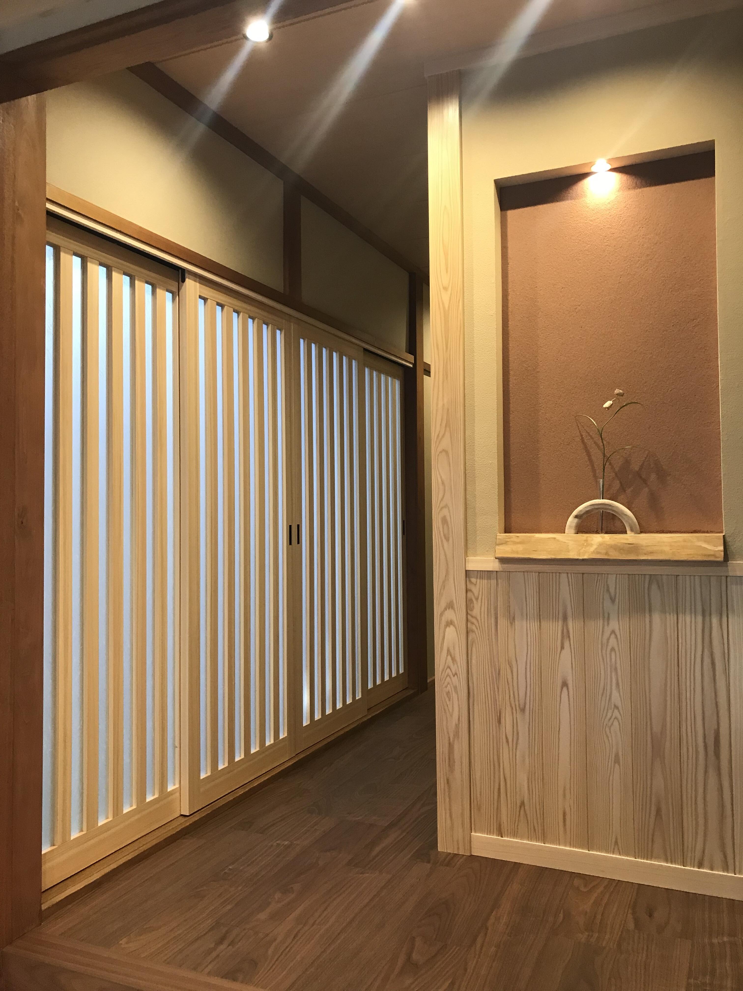 以前工事させていただき、この度LIXILメンバーズコンテスト2024 入賞しましたお施主様宅にて玄関入った左側の和室入口の襖を交換することとなりました。 明るく品のある、広さ感を感じられる空間になりました。 また一輪挿しがおしゃれです! 尚、本工事詳細施工例は 「上質な安らぎの時間を モダン和風」をご覧ください。