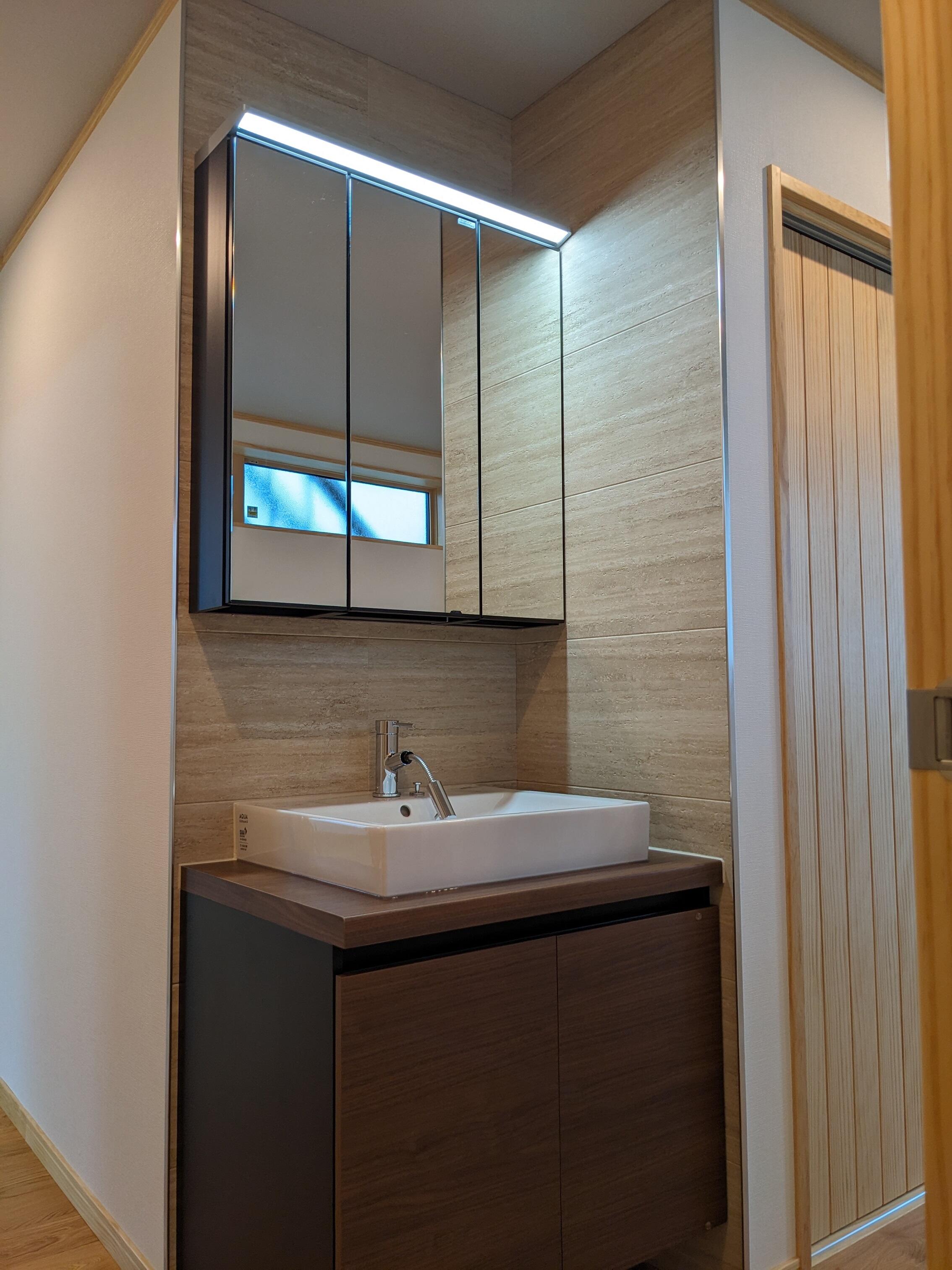 壁にはLIXILのルミシスを御採用していただきました。ショールームにて実物をみていただき一目ぼれしていただきました。また壁のエコカラットが高級感をさらに際立たせます。