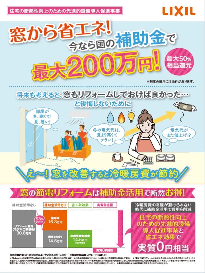 しかも 今なら国の補助金を活用して断然お得に窓のリフォームができます!