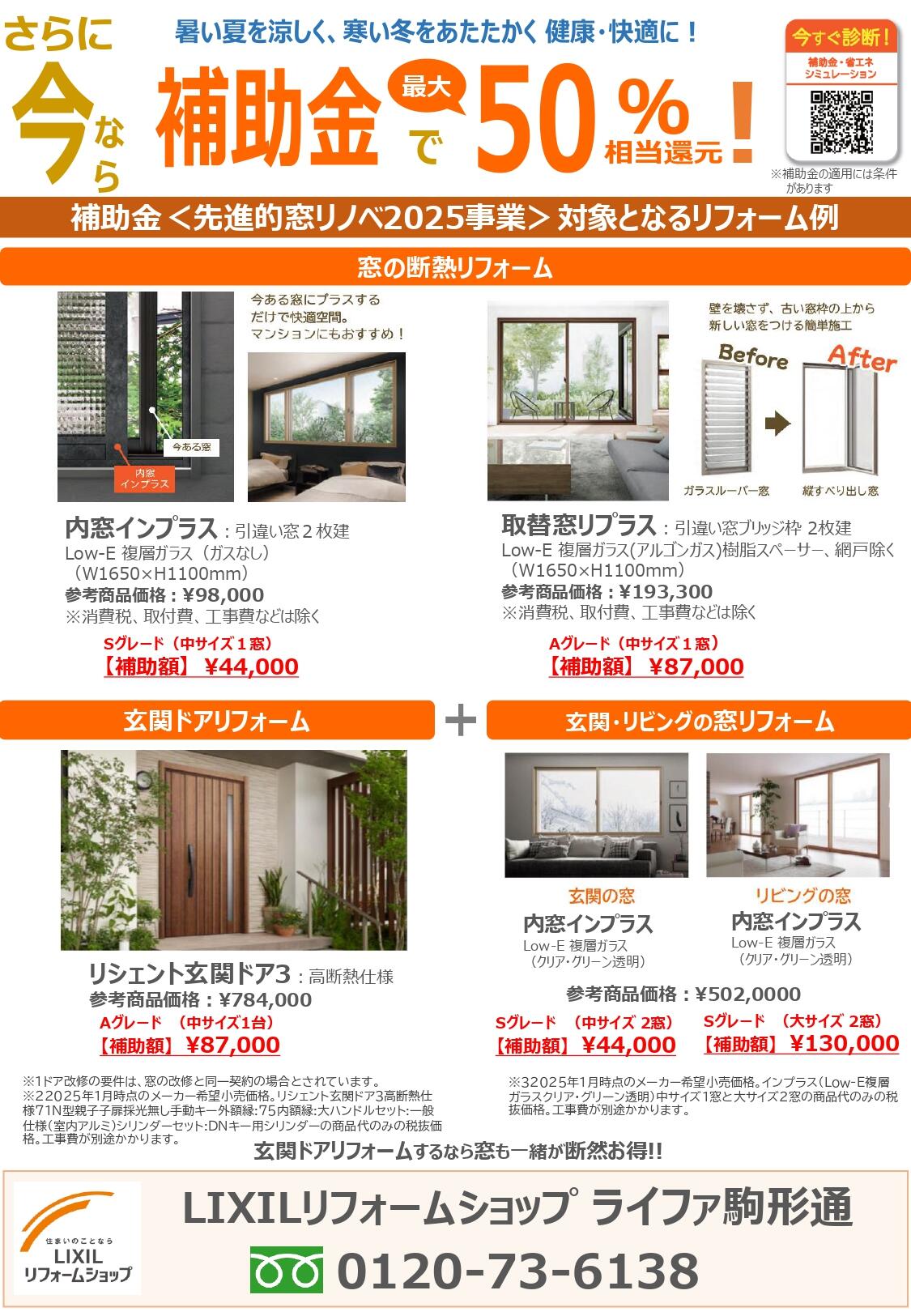 さらに今なら、補助金を活用して超お得に窓・玄関のリフォームができるチャンス到来です!