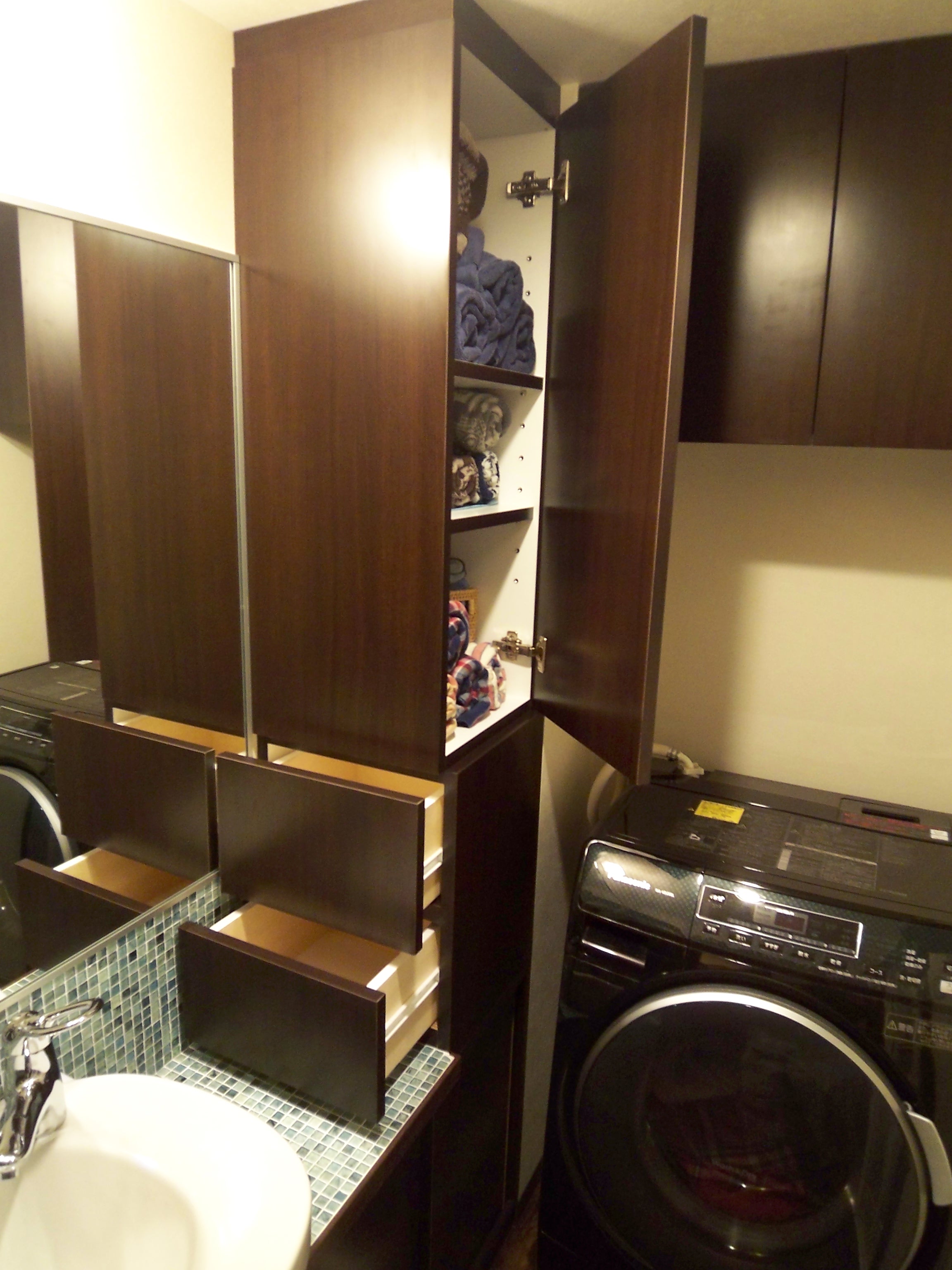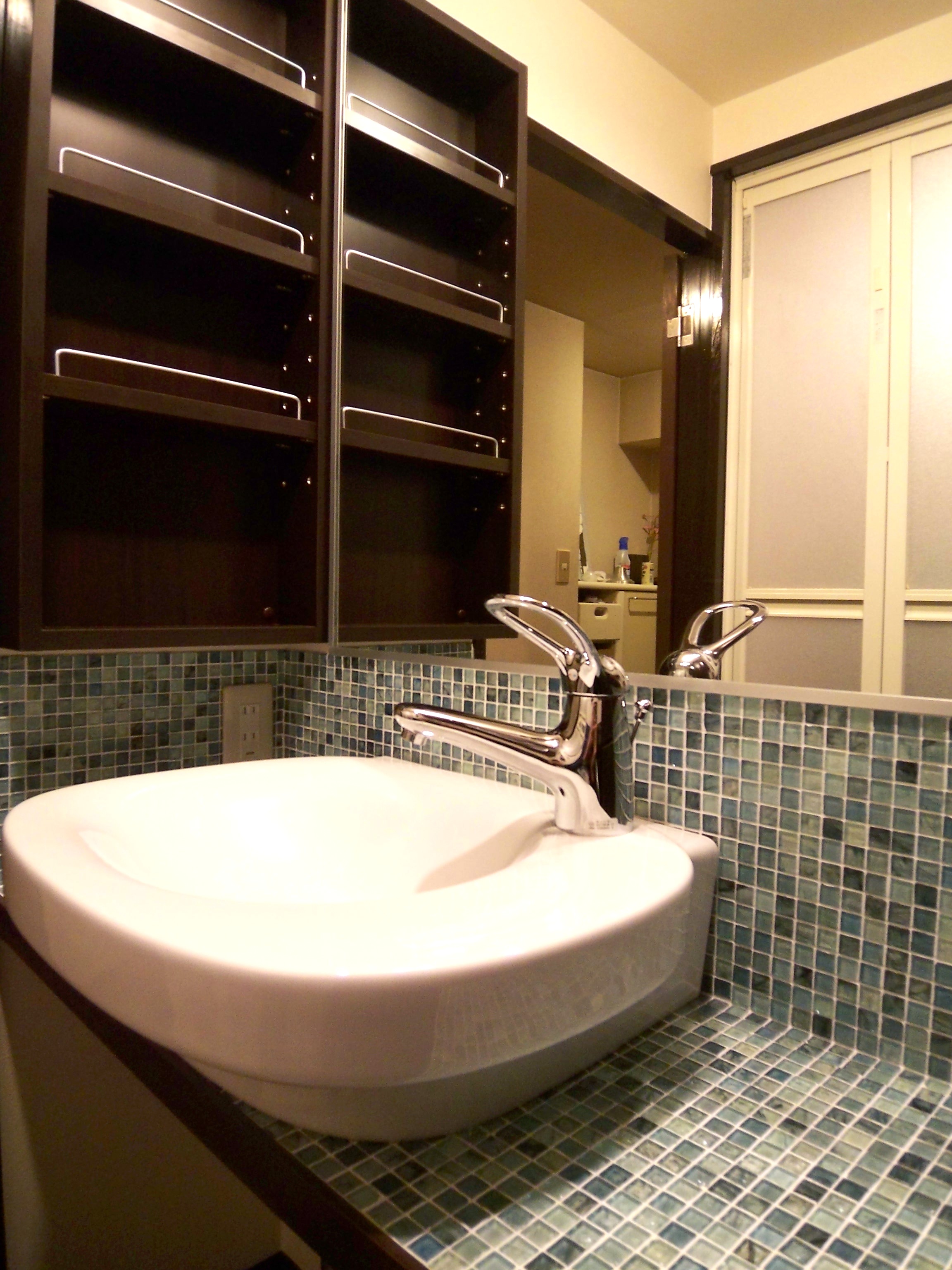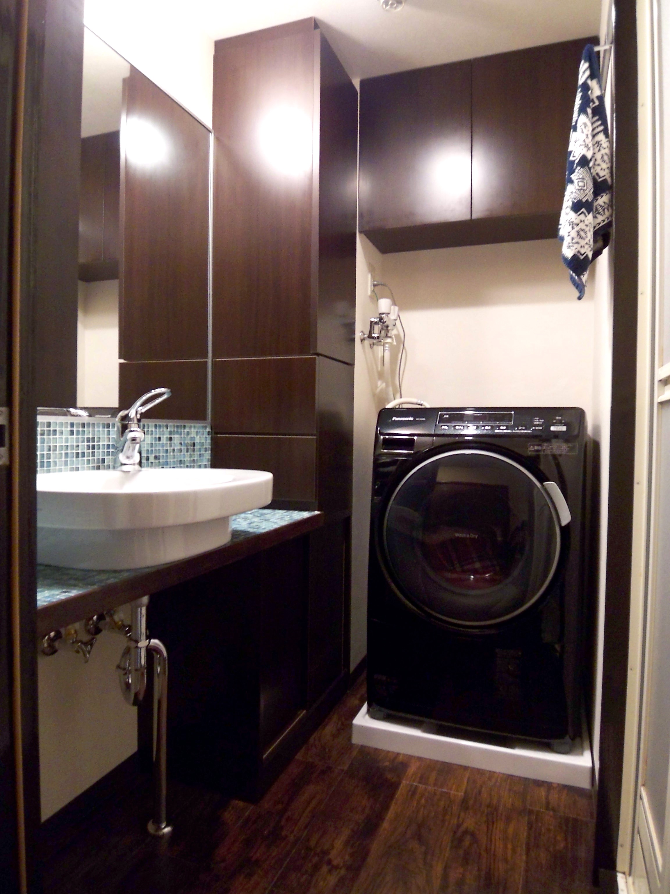 沼津市某マンションにて洗面室のリフォームです。 何年か前にキッチンなどを施工させていただいたK様より再度のご依頼を頂きました。 今回は以前出来なかった洗面室をリフォーム。狭いスペースながらも椅子に座って落ち着いてお化粧したいとのご要望でした。収納を各所に設け、カウンターを製作。いろいろと寸法の制約などありましたが、仕上がりをお施主様に大変喜んで頂けて何よりです。