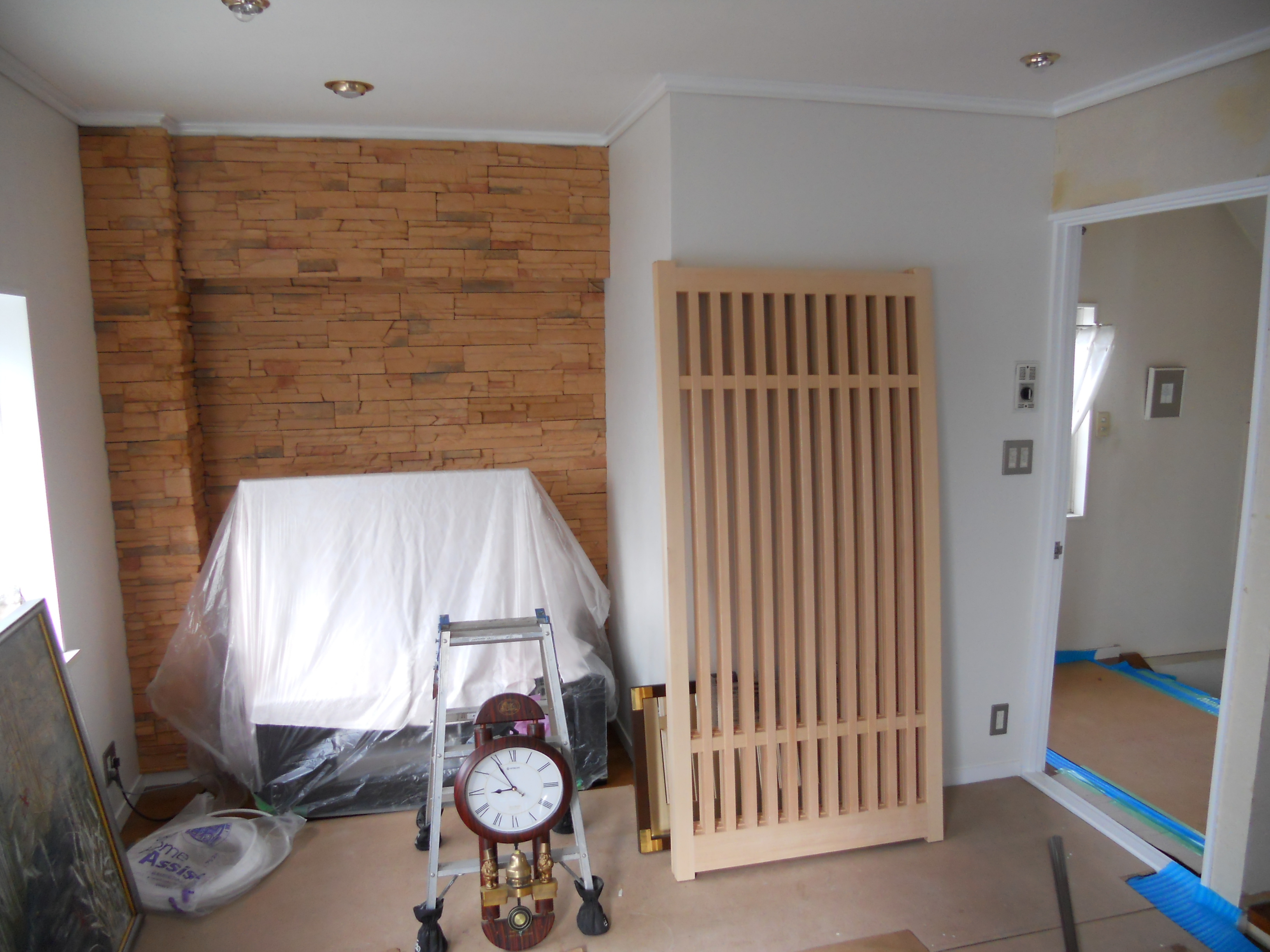 沼津市でリビングのリフォーム キッチンに引き続きご依頼を受けました、年数が経って壁紙なども傷んでいた為、この機会に綺麗にしたいとのご要望。御施主様のアイデアを随所に生かした素敵なリビングに仕上がりました
