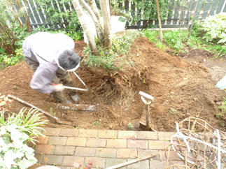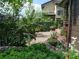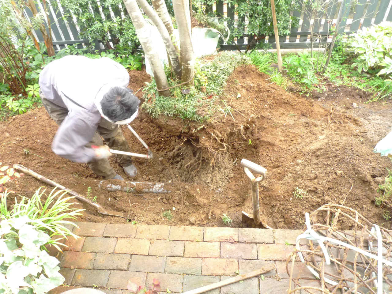 お施主様が長年コツコツと作りこまれてきたガーデンですが、家のシンボルツリーの半分が枯れてしまった様子。これを機にシンボルツリー植え替えを兼ねて、ブリチッシュガーデンのリフォームです。