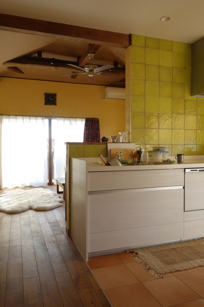 新しい生活を始めるにあたり、お二人の生活に沿えるようにプランニングしました。 最終的に日当たりの良い2階部分をお好みのリゾート風のリビングキッチンにするご提案をお選びいただきました。 工事にあたり施主様も積極的に参加され、内装のしっくい壁や塗装などを行っていただくことでコストダウンも図り、機能面でもオール電化や水まわり設備改修、断熱改修などを行い今後住まわれるに耐えうる仕様としました。 愛着も湧く自慢のリビングは開放感も出てご友人やご親戚の方にも好評だそうです。お施主様のこだわりやご要望をカタチにするお手伝いが出来、仕上がりも大変喜んで頂き、誠に嬉しく思います