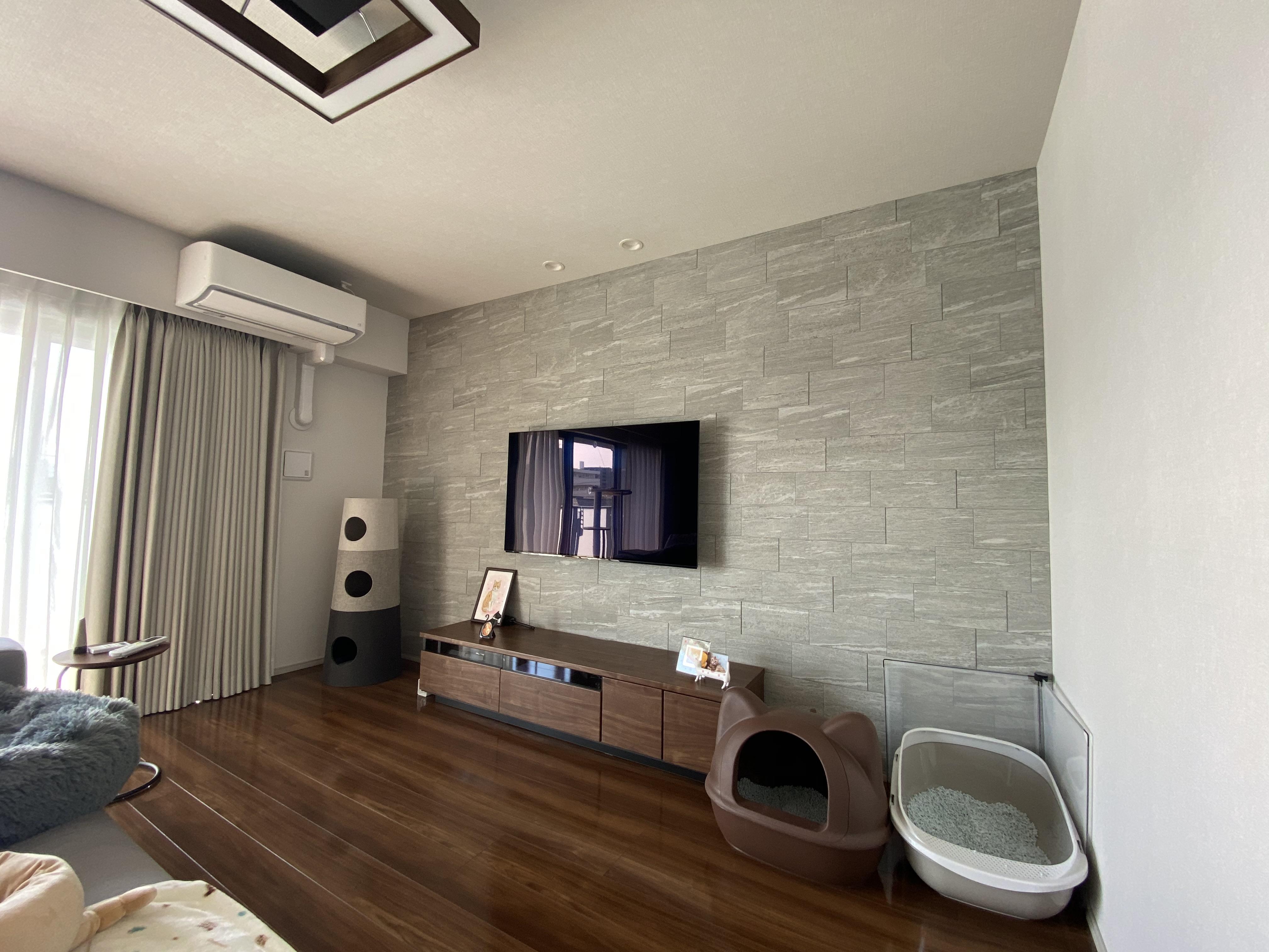 何度かお打ち合わせを重ね、お引渡し直ぐに工事に取り掛かりました。もともとお洒落なマンションですがお若いご夫婦のセンスで更に素敵な空間になりました。猫ちゃんも飼っておられるのでそんな空間にもエコカラットの消臭機能が役に立つかと思います。