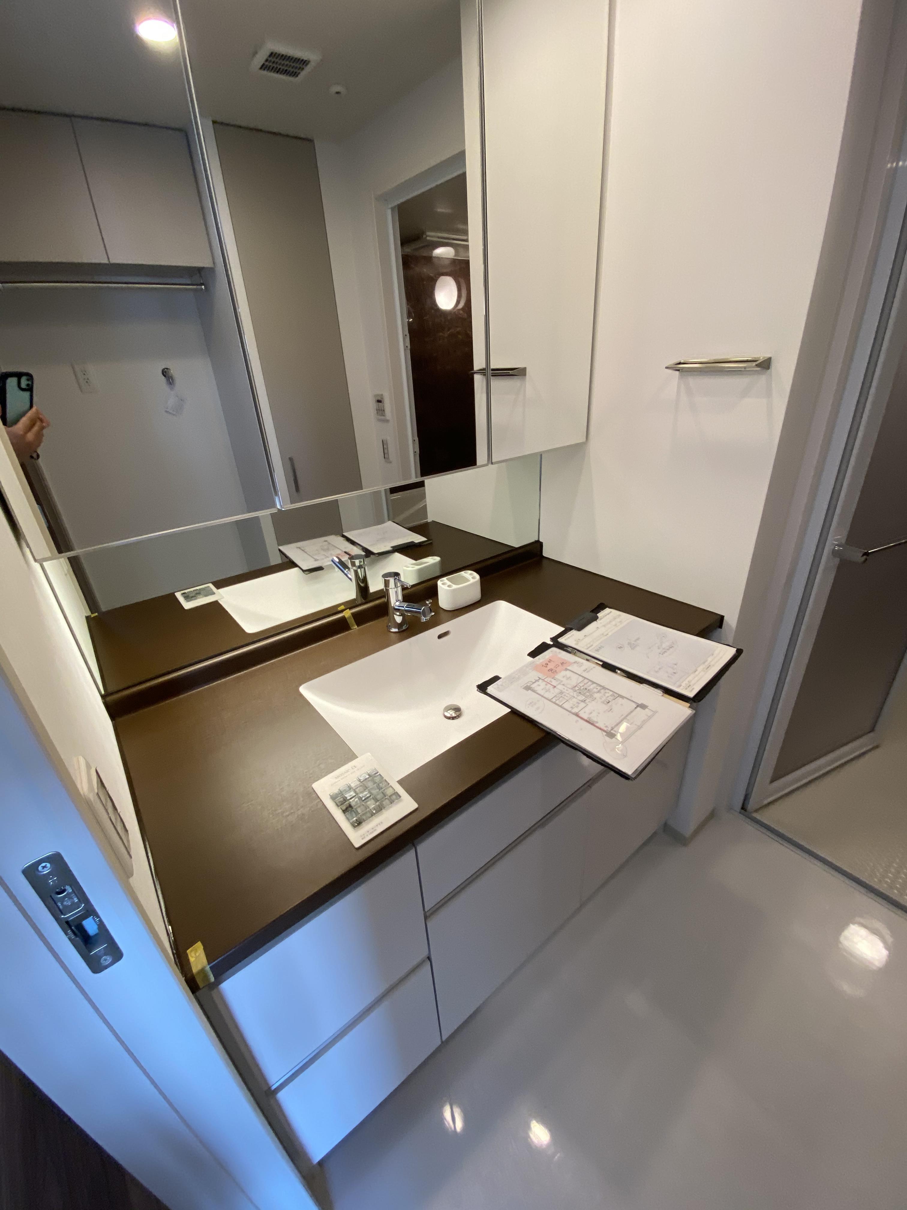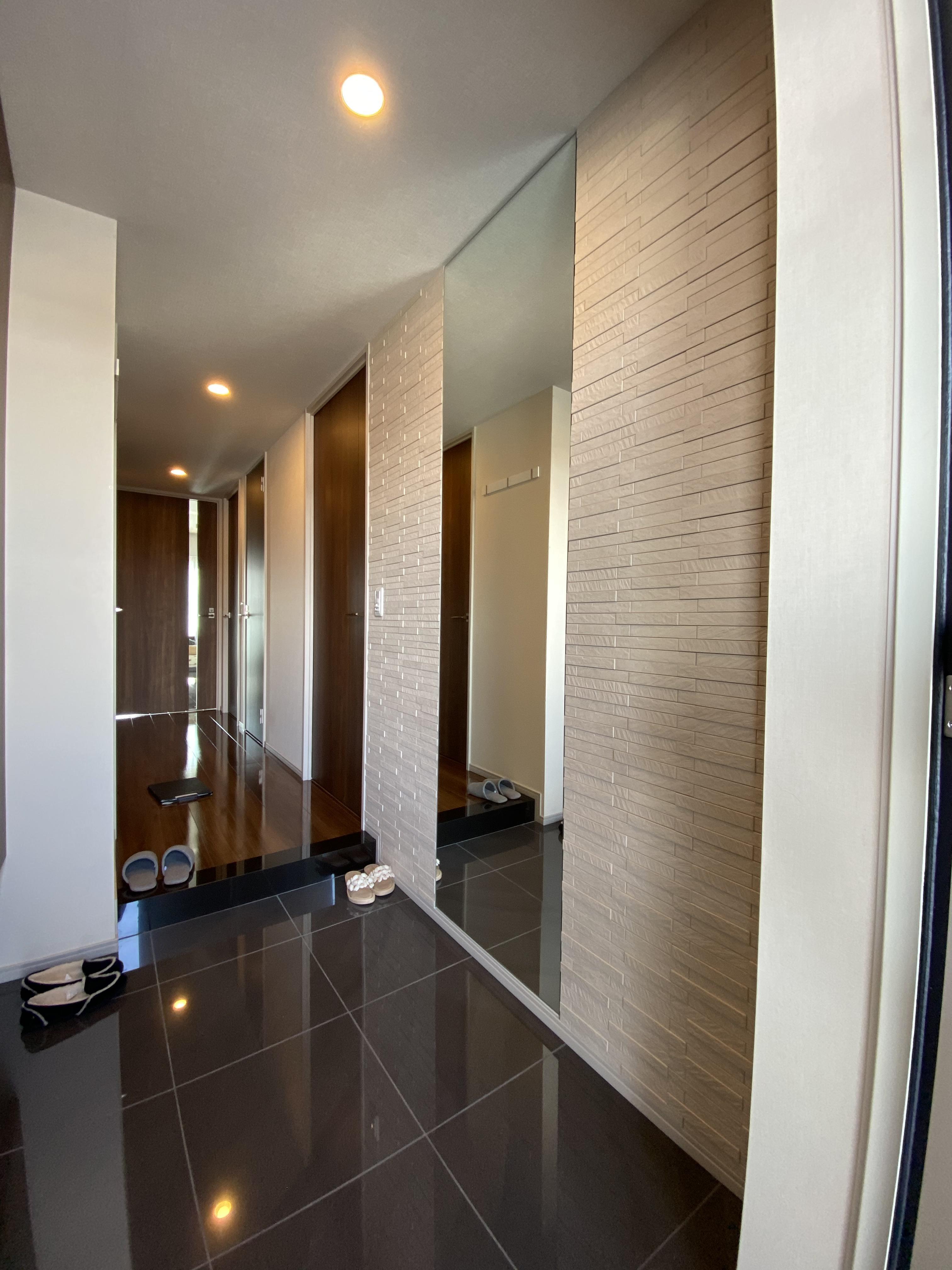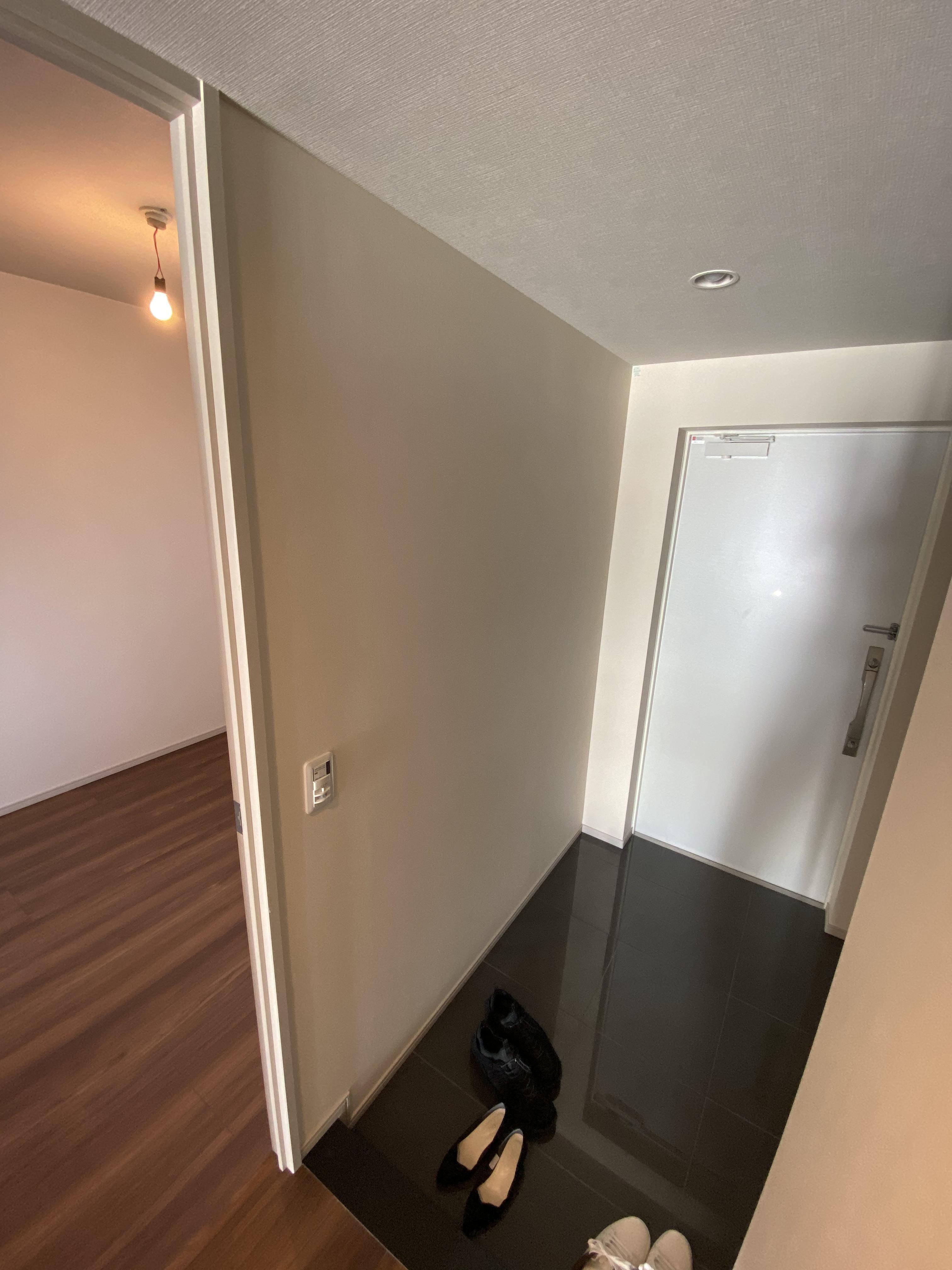 新築マンションを購入予定のお施主様よりお問い合わせ頂きました。弊社施工例にも多く掲載のリビング/玄関のエコカラット工事を行いました。加えて洗面所の一部もモザイクタイルを施工します。