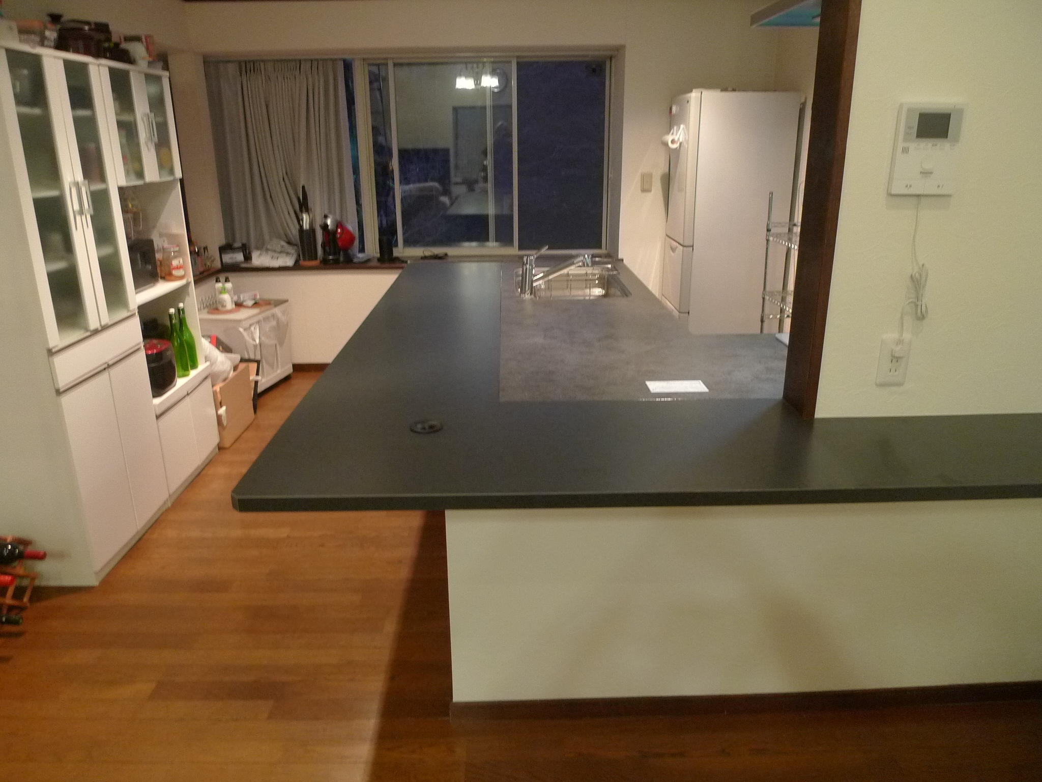 タイトルをご覧になってピンと来た方、正解です!。そう、このリシェルSiのセラミックトップのカタログにはセンターキッチンのペニンシュラL型はありません。ということでカウンターを家具屋さんに作ってもらうことで実現しました。