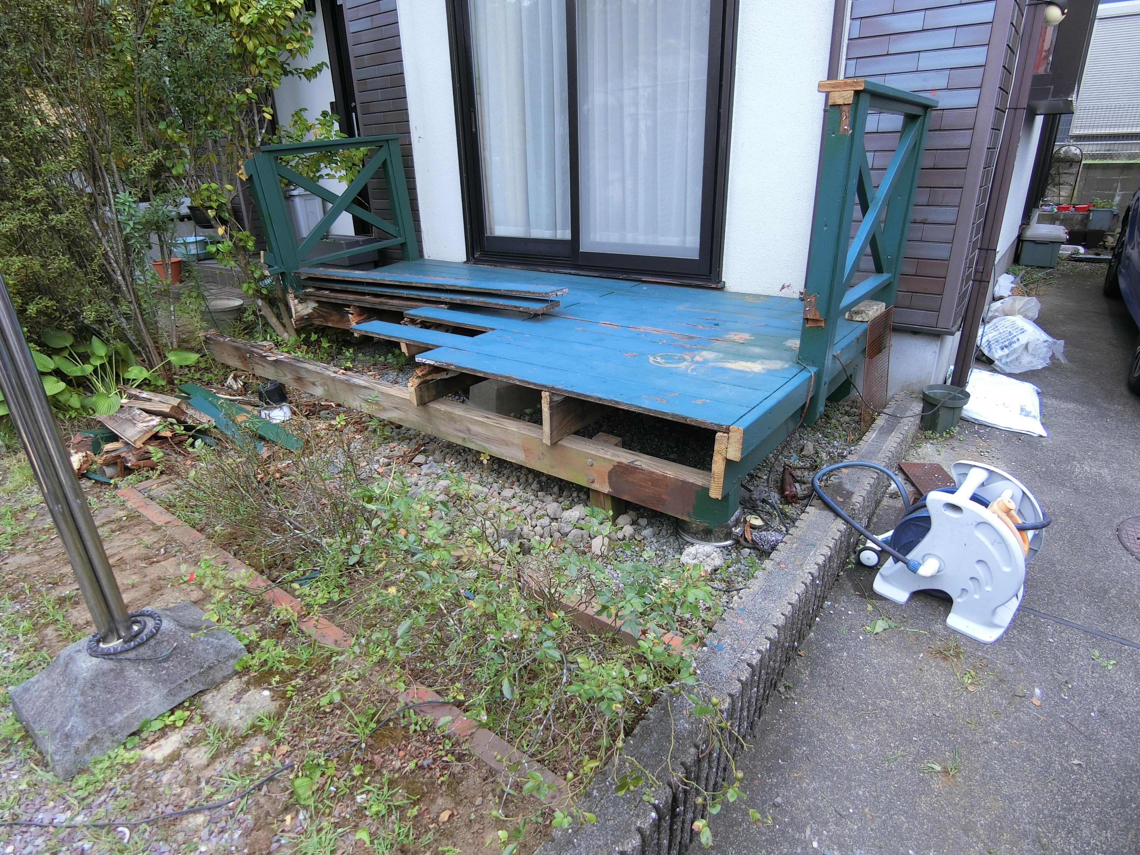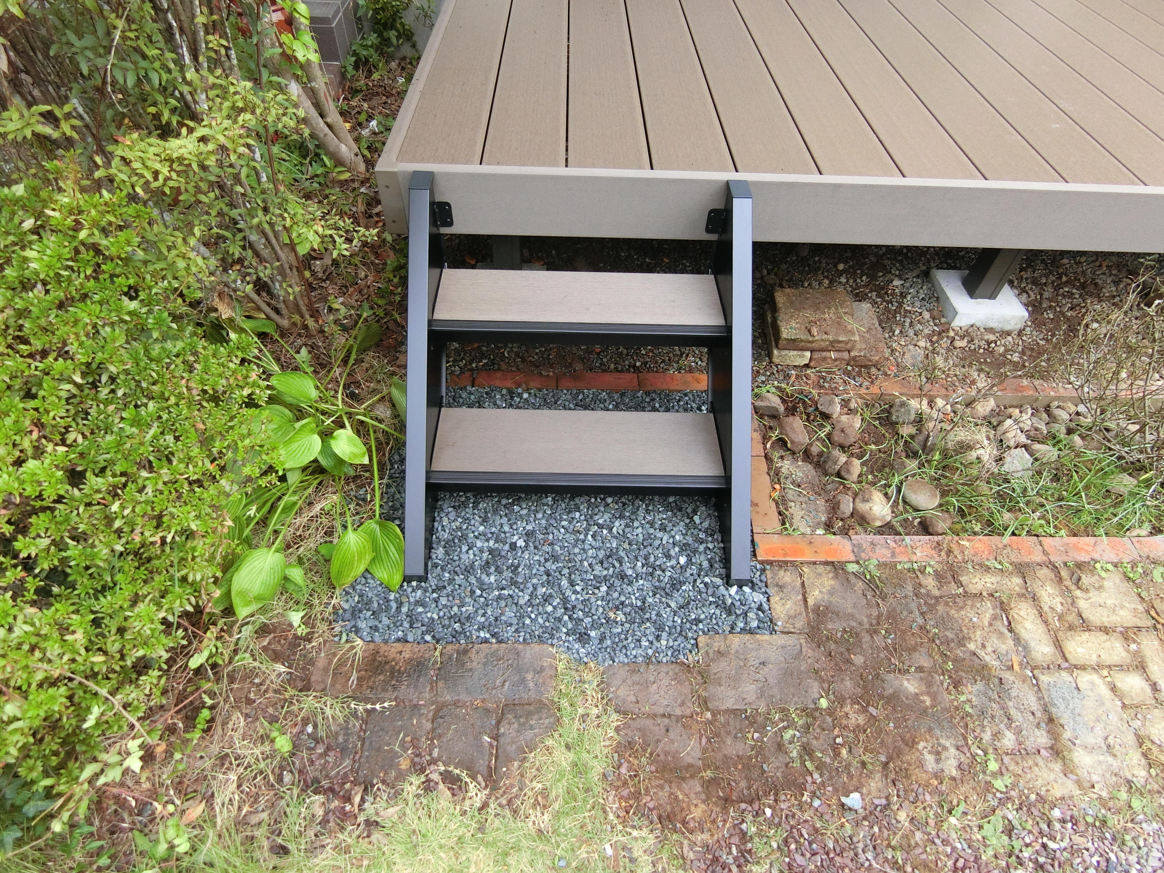 木製のウッドデッキを樹脂製の人工木で再生しました。木製のウッドデッキは手入れをしないと腐食してしまいます。 LIXILの樹ら楽ステージは樹脂製ですが樹木の風合いでお手入れも楽々です。
