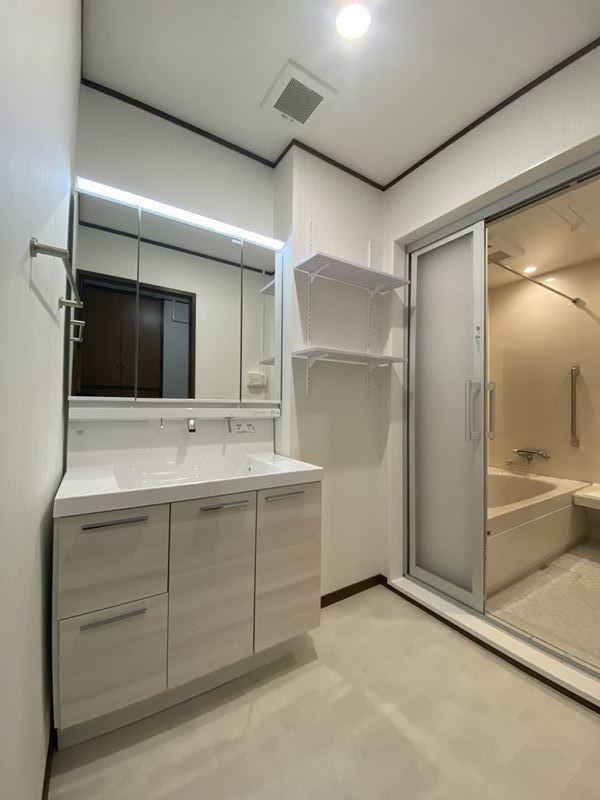 沼津市で浴室のリフォームを行いました。もともと20年ほど前にユニットバスにリフォームしてあったのですが、その際に配管の都合で洗面所の床に段差が大きく生じてしまった事、窓を小さくし過ぎてしまった事や結露のお悩みなど細かなご不満がありました。今後の為を考えてベンチ付きのシステムバスや浴室暖房、また窓の大きさも大きく戻したうえで、断熱性能も高めます。今回は国の省エネ補助金に該当するリフォームでしたのでご提案も含めてお話を進めました。