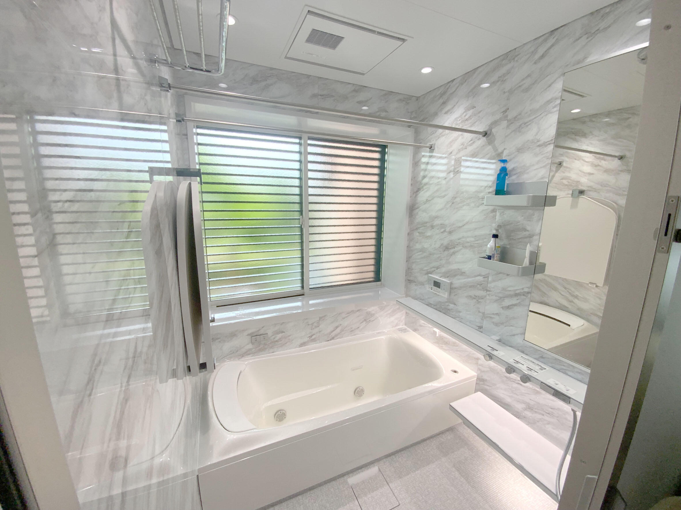 掃除がしやすく、ゆっくりお風呂を楽しめるTOTO最上級グレードのシンラを設置させていただきました^^ ラグジュアリーな間接照明や肩湯。床を自動掃除する機能などがついています!