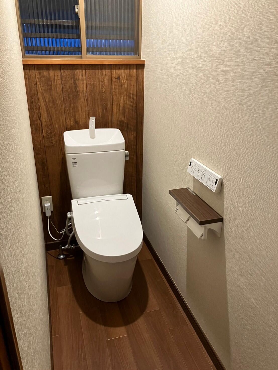 暖房便座が壊れてしまったので交換したい。 また、壁紙も汚れが目立つため新しい壁紙を貼ってほしい。 ・工事内容 トイレ、紙巻き器交換 天井壁クロス貼替 照明交換 ・商品情報 LIXILアメージュ 税込298,000円