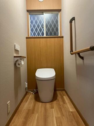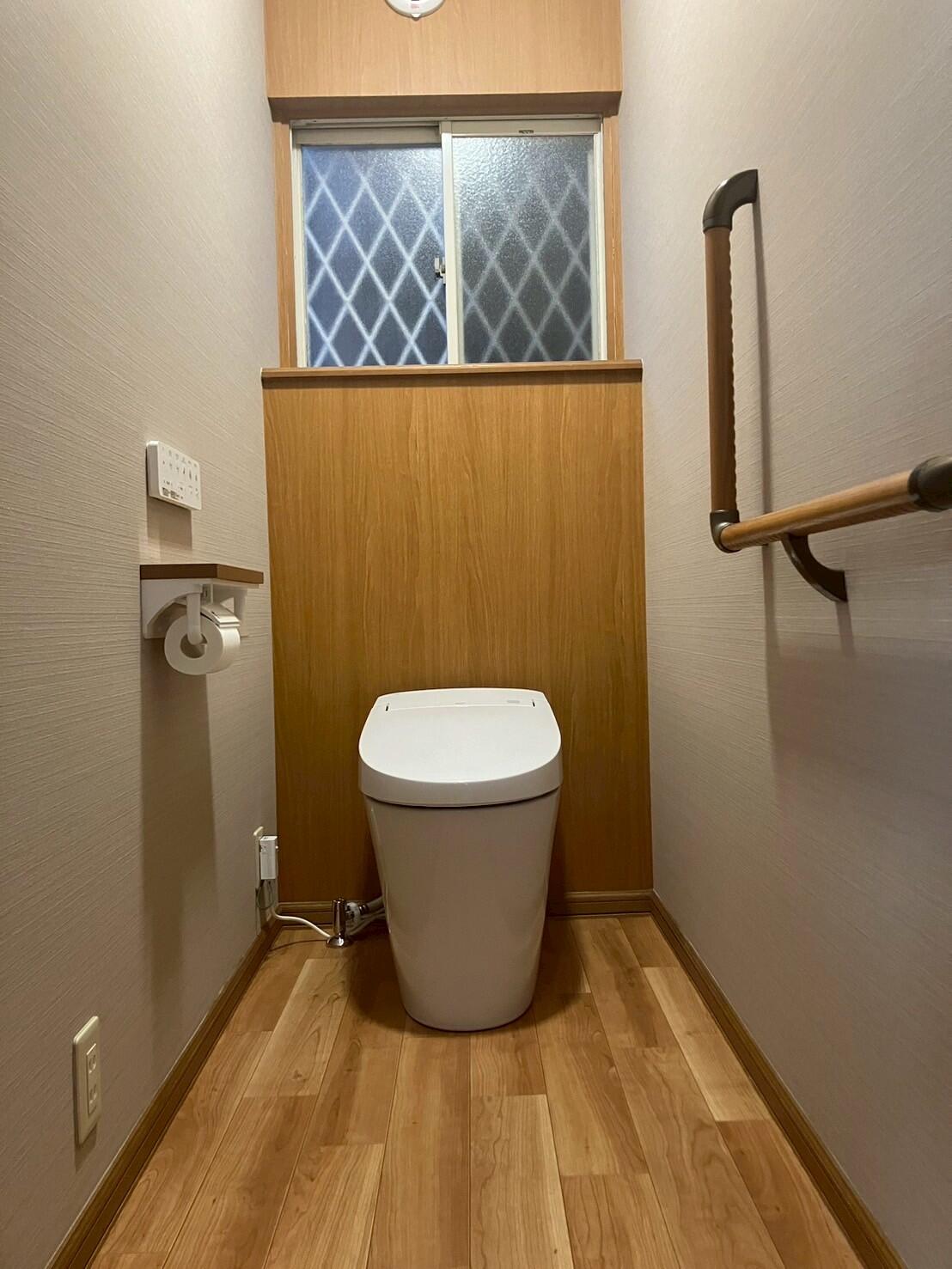 最新のユニットバスと内窓を設置したことにより、お風呂の中が暖かく快適な空間となりました。 トイレもタンクレストイレにしたため、掃除がしやすくスタイリッシュな見た目になっています^^