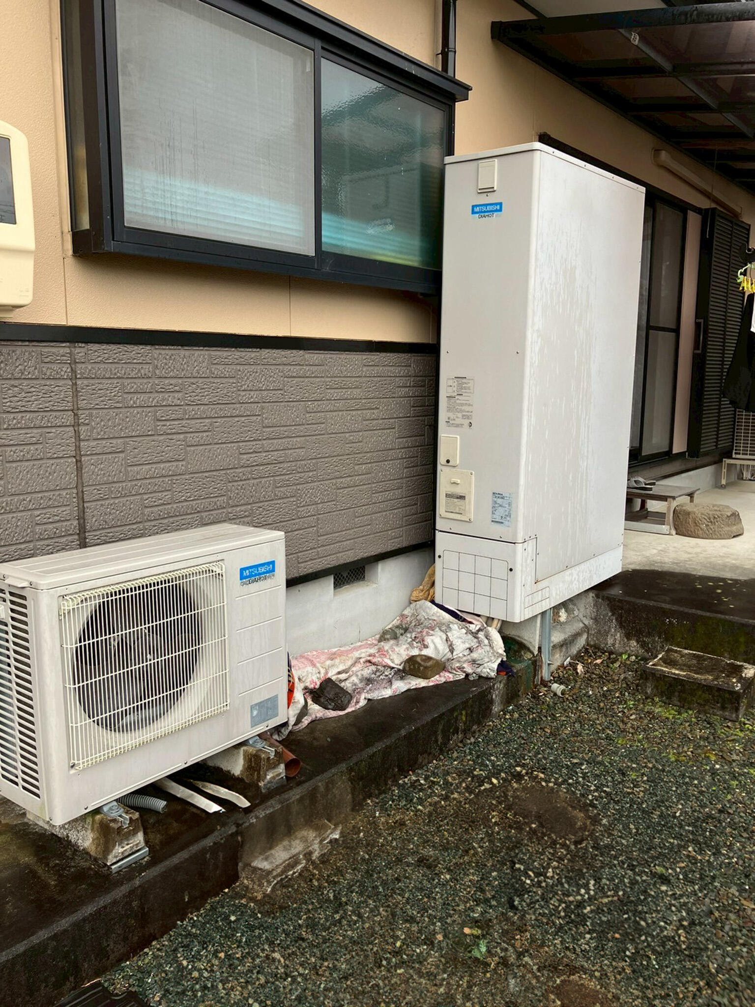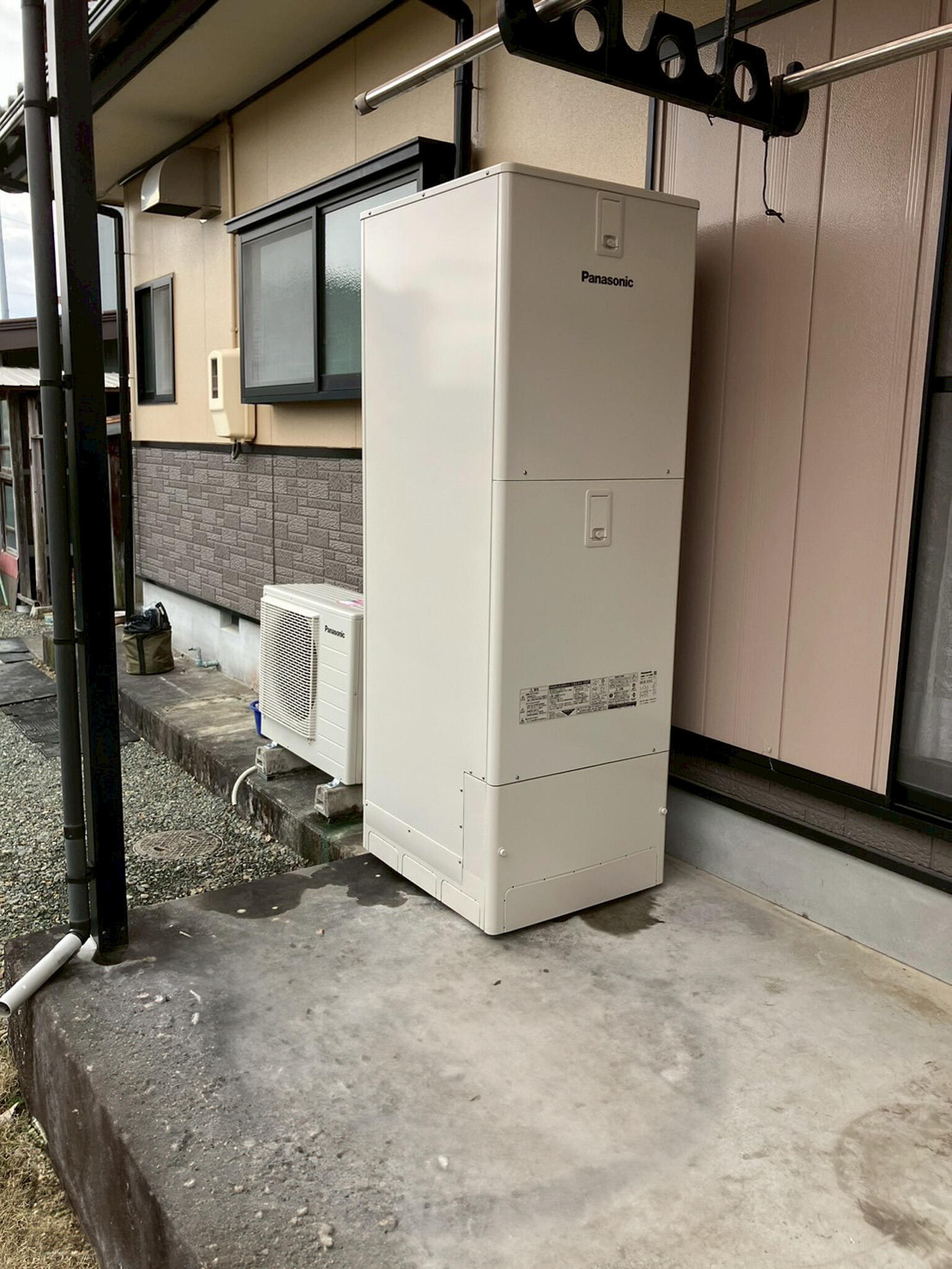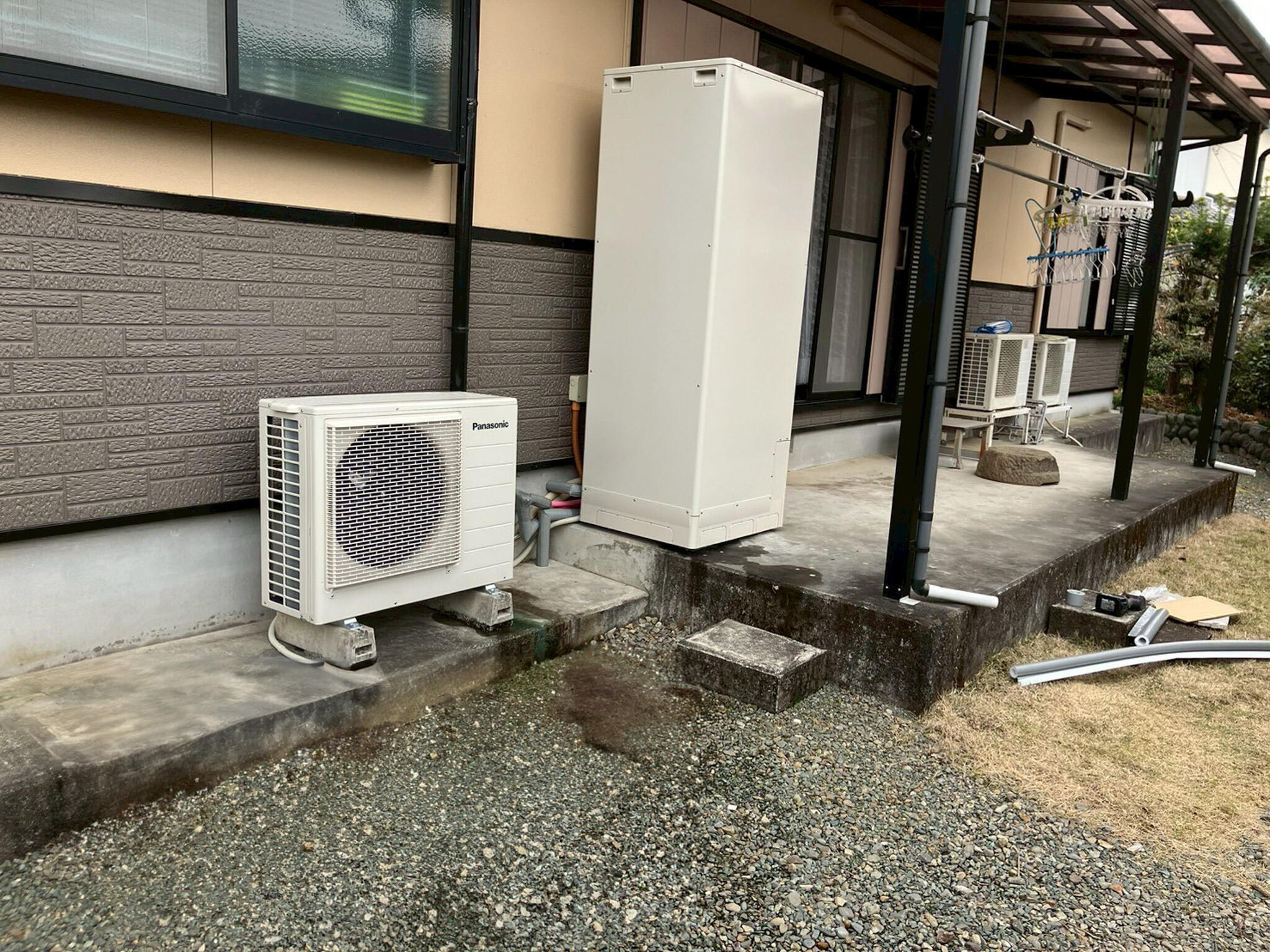 今回は安価な普通のスタンダードのエコキュートがご希望でしたので、少し設置位置を変更して普通の角形のエコキュートを設置させていただきました。