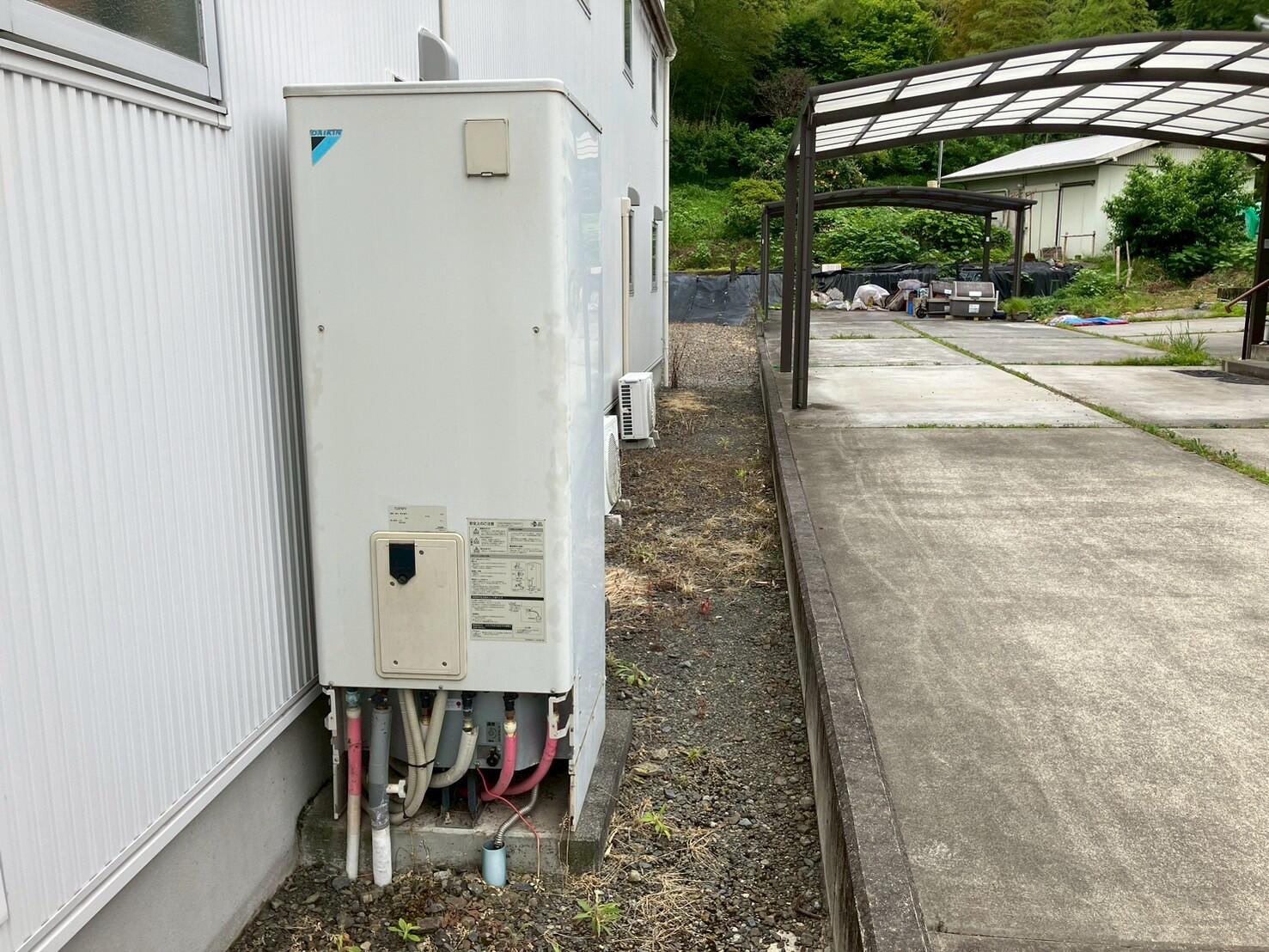 現在ご使用のダイキンのエコキュート(12年使用)がエラー表示が出て沸かなくなってしまった。訪問してガス給湯器の仮設をさせていただきました。