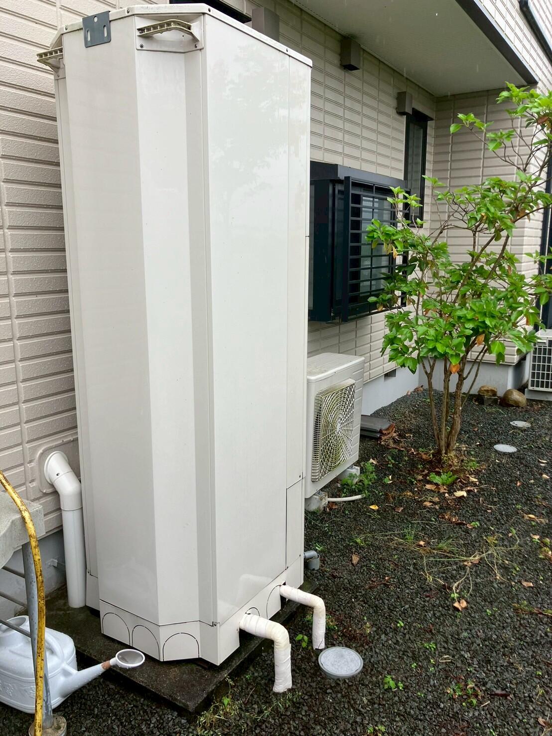 エコキュートのヒートポンプユニットから漏水していたため、即日でガスの仮設給湯器を設置させていただきました。 弊社にてエコキュート交換していただくお客様には仮設のガス給湯器を設置させていただくため、お湯を使えない時間が無いまま、給湯器交換工事を行うことができます^^