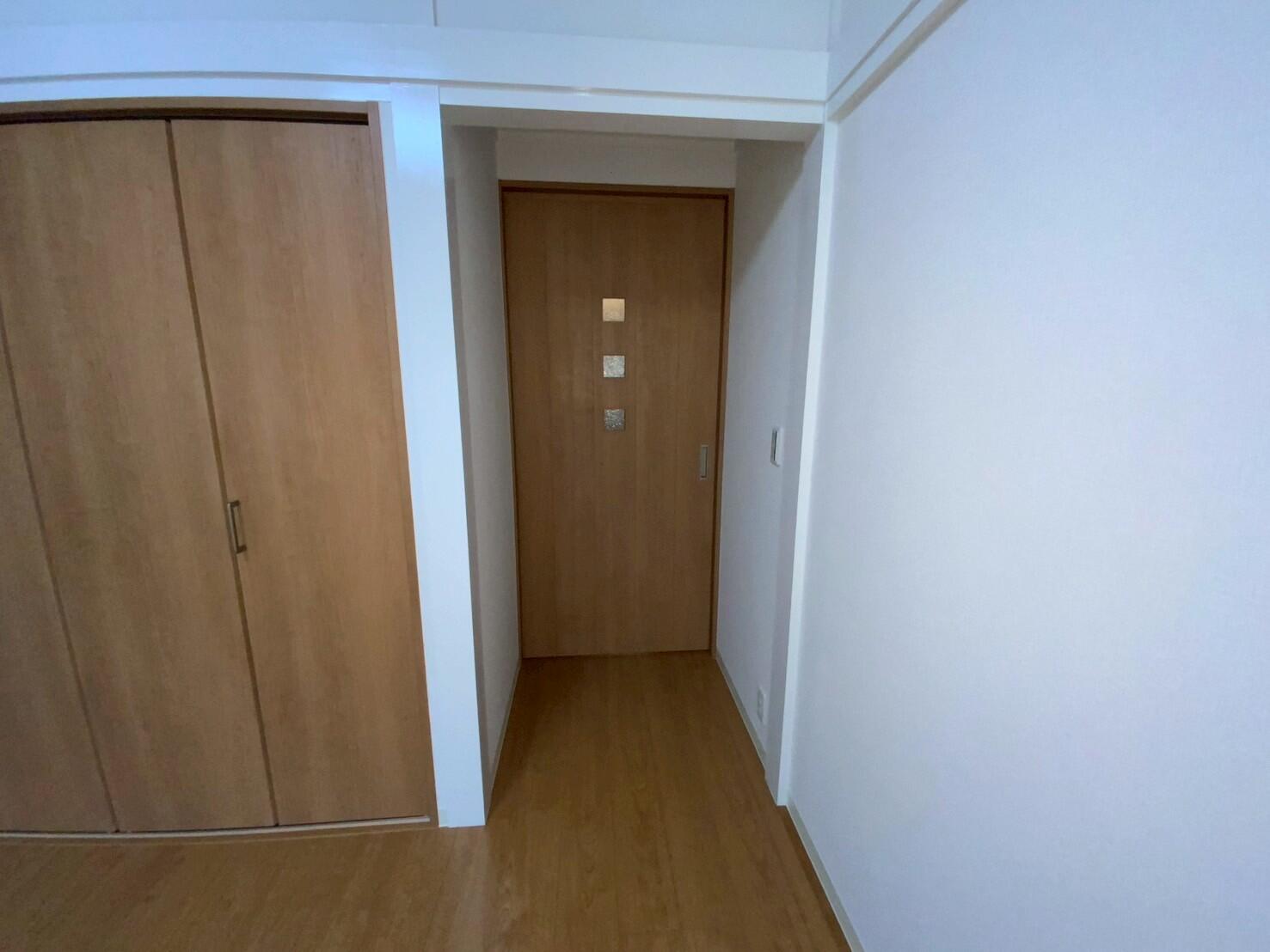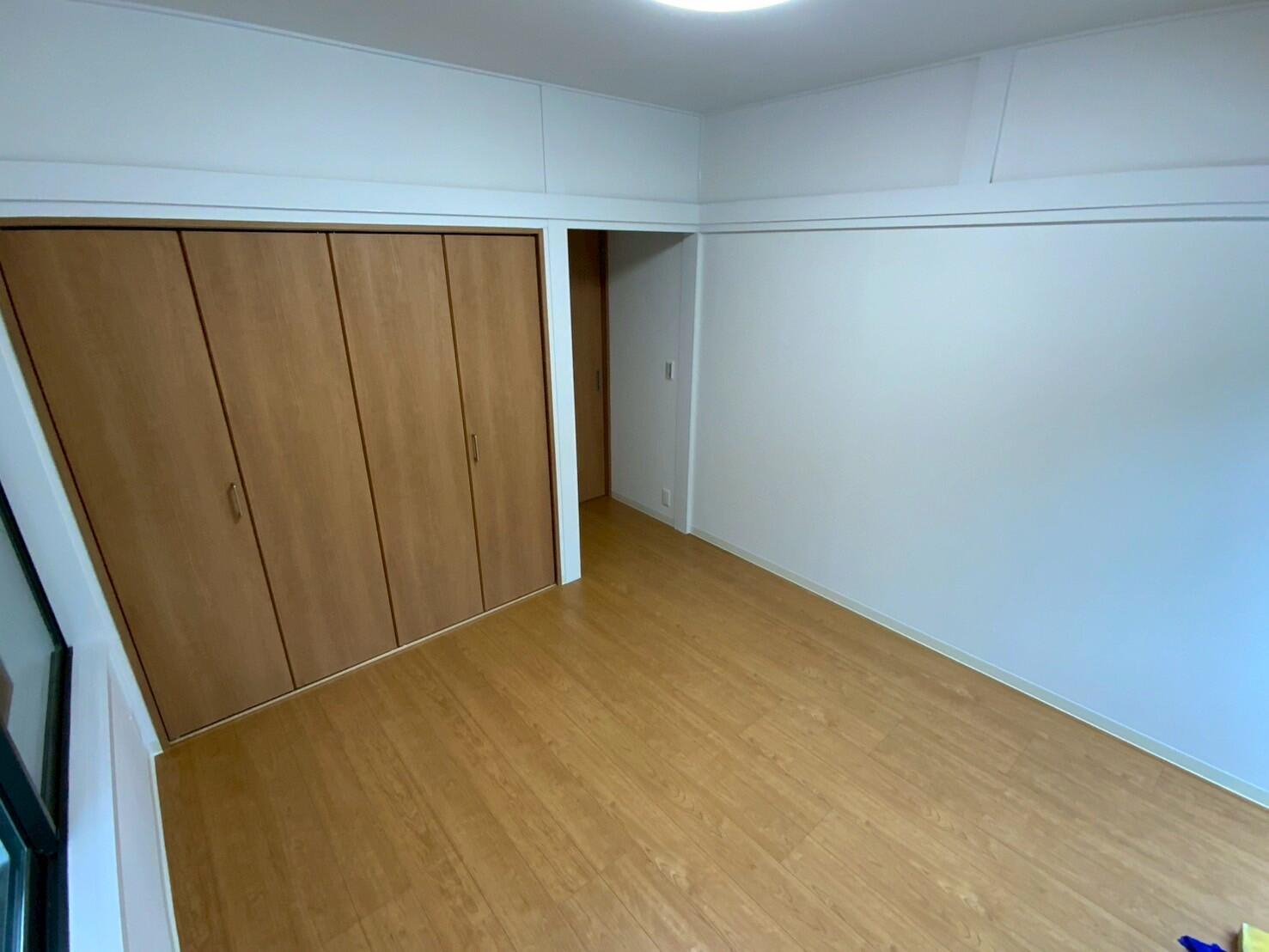 生活スタイルの変化に伴った和室の洋室化工事です。 なるべく既存の形を残したまま、和室感の強い柱や長押は、クロス近似色に塗装を施し、 木板の天井はそのまま下に新たな天井を組み、クロス仕上げとすることで、最小限の工事で洋室風に生まれ変わりました。 また、新たな生活導線を考慮し、入口の位置を変更。塞いだ壁のLDK側には将来を見据え、 壁掛けTV下地とコンセントを仕込みアクセントクロスにて仕上げました。