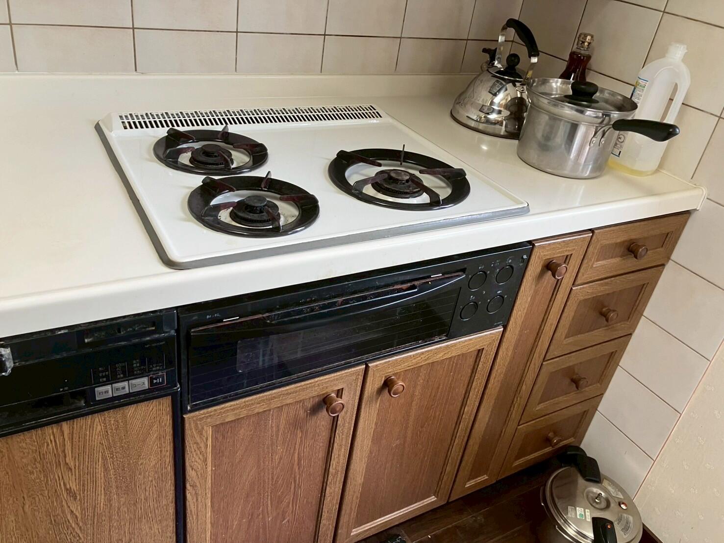 とてもキレイな状態で30年くらい使用‼今度のコンロは、安全機能が多く付いていて安心安全です。