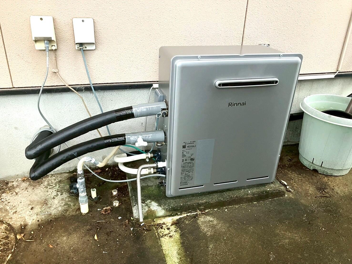 現在ご使用のリンナイのガス給湯器が故障したとの事でご来店いただきました。ご訪問点検しましたところリモコンにエラー表示と給湯器本体から漏水が見られました。エコキュートへの取替もご検討いただきましたが、お湯の使用量が少ない様でしたので、今回は今まで通りの後継モデルのガス給湯器のお取替をさせていただきました。