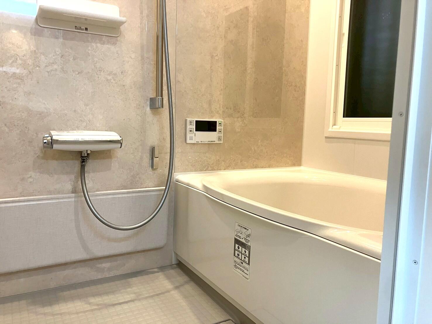 最新のユニットバスはスポンジで簡単に汚れを落とすことができ、掃除の手間が楽になります^^ また、浴室と洗面脱衣室の窓に内窓を設置することにより、断熱性が向上し温かい室内で快適にお風呂を楽しむことができます。