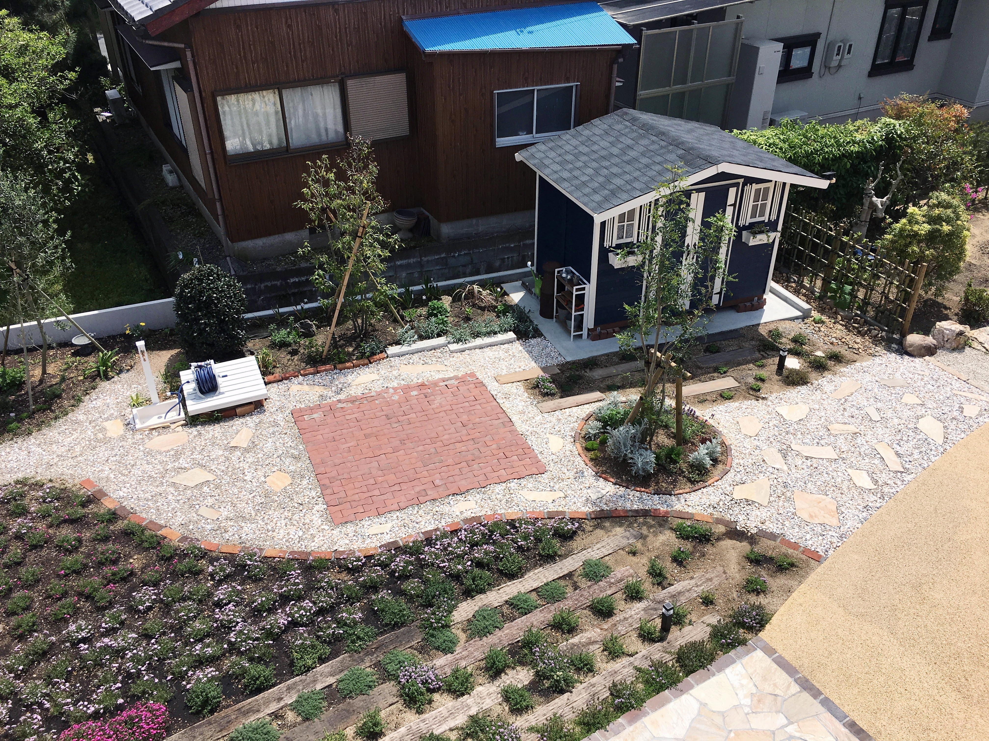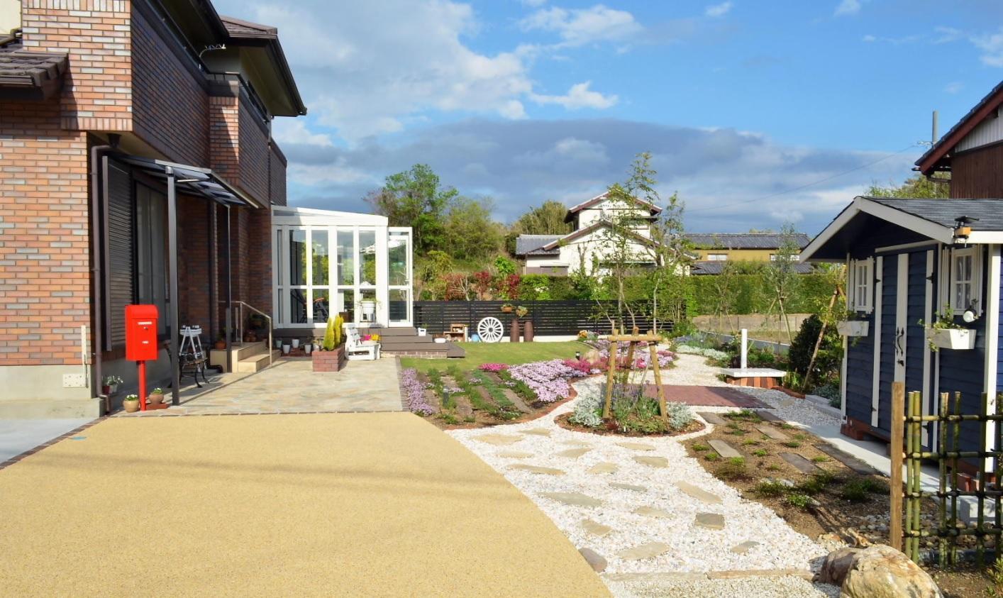 古くなったブロック塀やマキ囲いを撤去して、敷地の外周を整備しました。 また、元々の母屋を解体して駐車スペースに。リビング前には大きなガーデンルームを設置し、花と緑に囲まれた暮らしで毎日エンジョイされています!随所にこだわりの小物雑貨・多肉植物が配置されていて、まるでお店のようです!