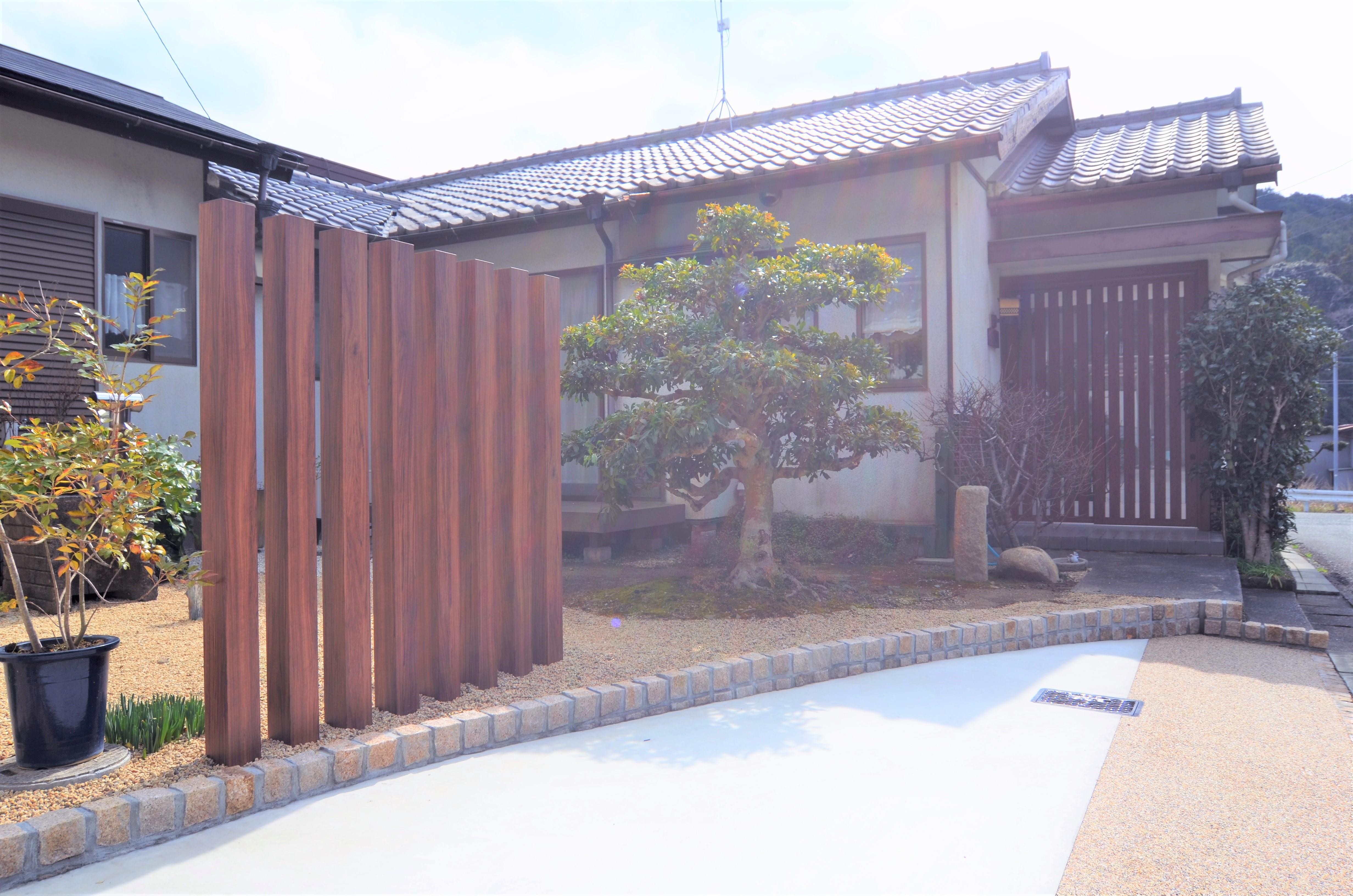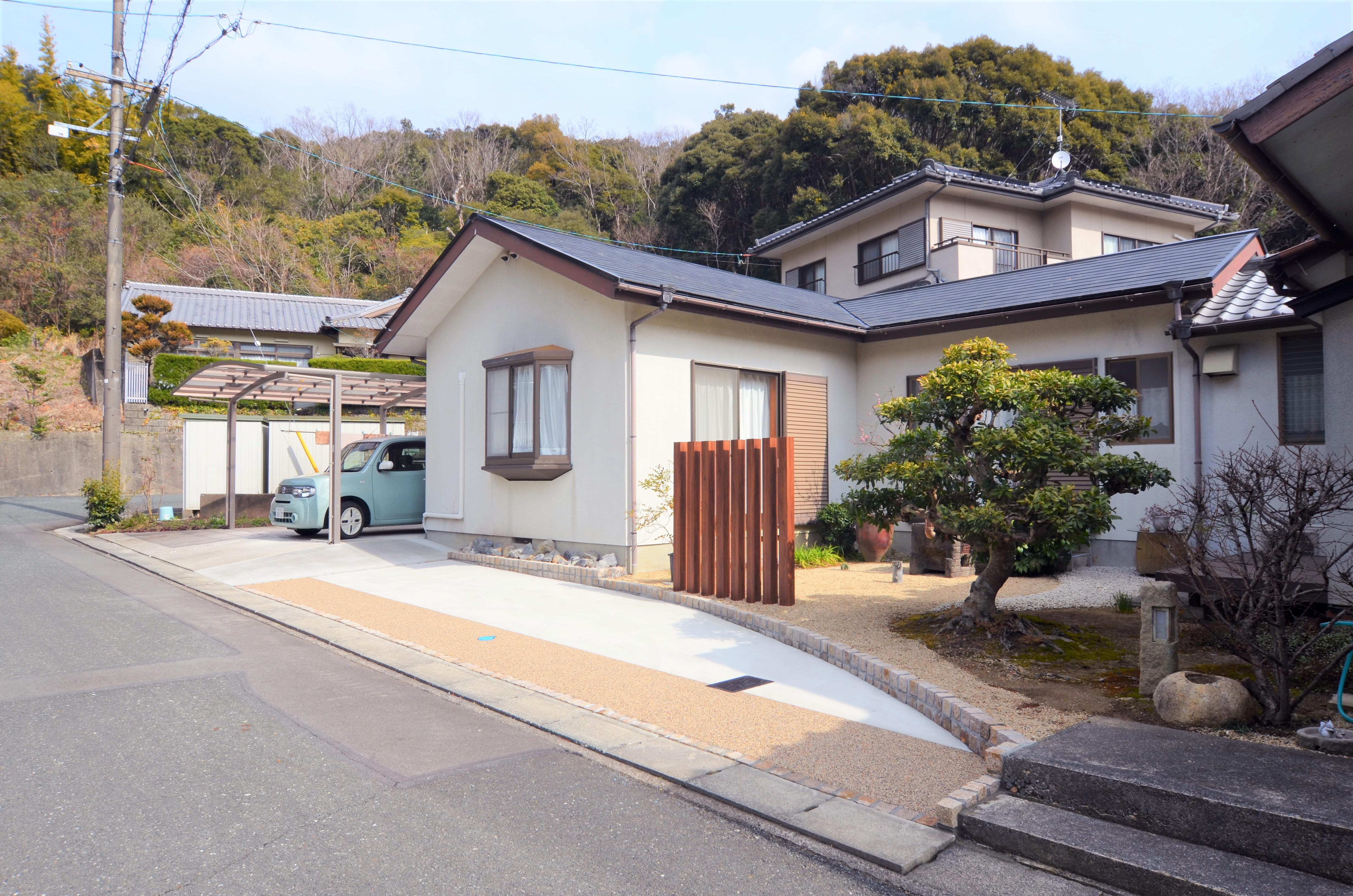 十数年のお付合いをさせて頂いているお客様より『この庭を潰して駐車場を広げたい』というご要望を頂きました。 とても手の行き届いたお庭を無くすのは残念な思いもありましたが、今までの和風の雰囲気を活かしつつ、庭と繋がりのある駐車スペースになるようご提案致しました。 ご近所さんからの評判も良いよと嬉しいご報告も頂いております。