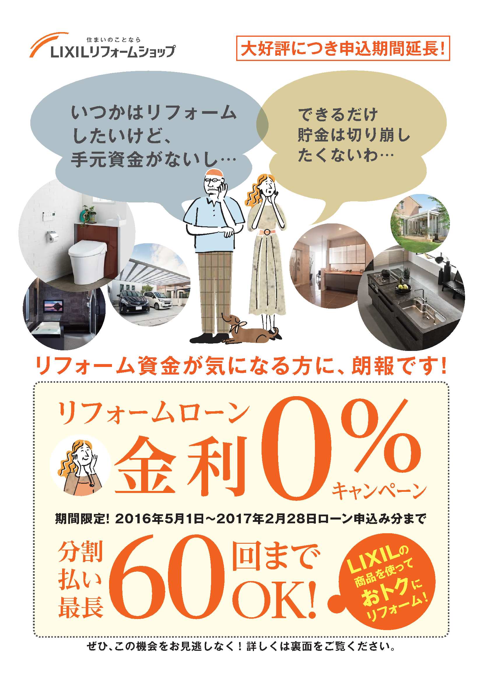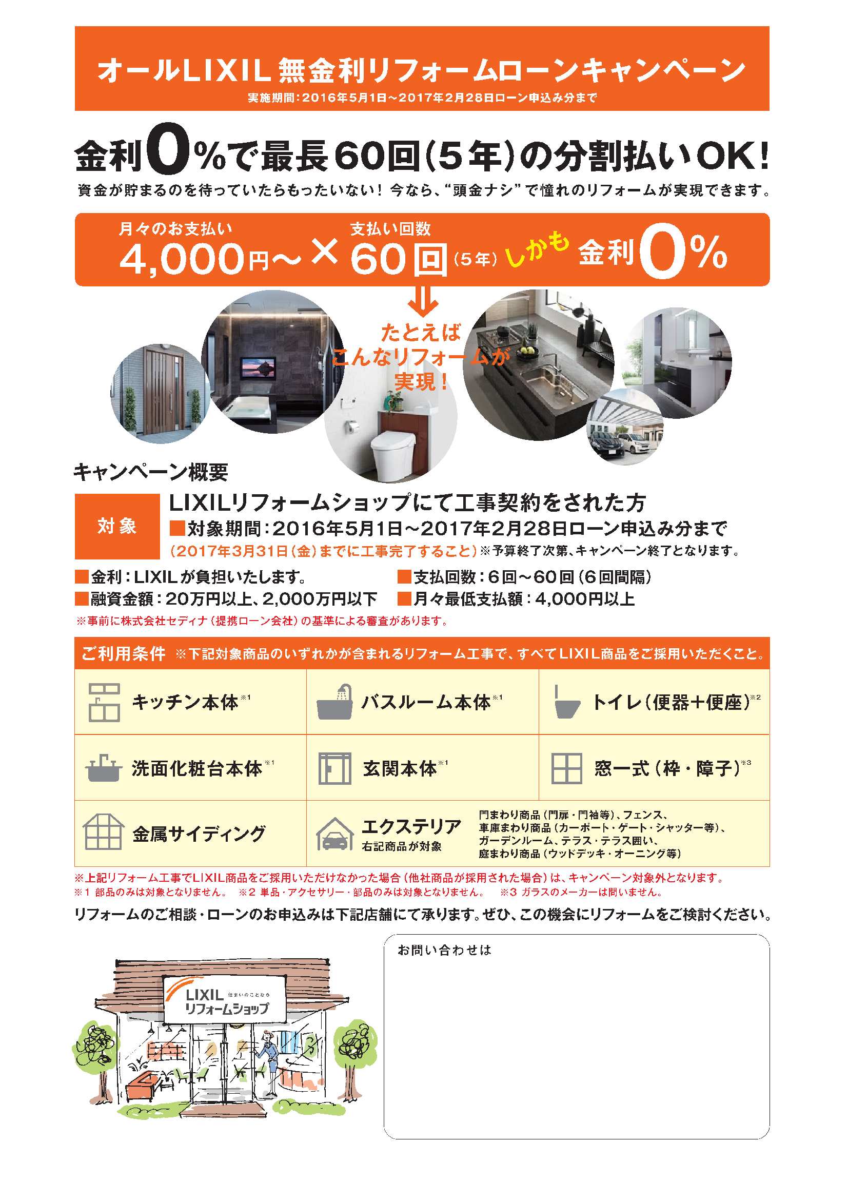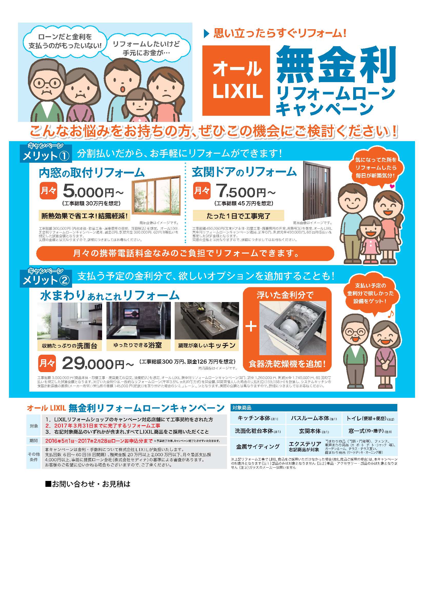 表題にもお知らせしましたが「オールLIXIL無金利リフォームローンキャンペーン」を開催中です。