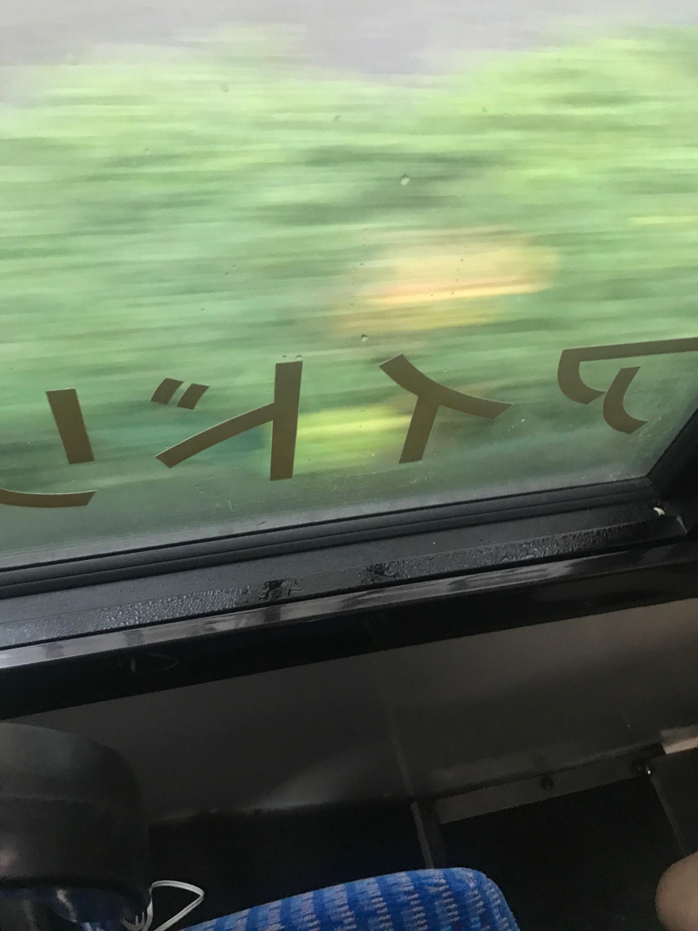 雨の日はバスで通勤しているのですがいつもの席に座ってふと外を見ようとしたら...