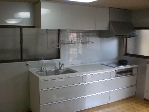 キッチンの入替の中で気をつけたのが、外壁側からきていた水道配管を、床下に通し、また既存の穴を通りから目立たなく化粧させていただいたことや、コンセントの位置を生活や家電種類によってご提案させていただいたことです。入替だけでなく、今後のライフスタイルも考えながらご提案させていただき、きれいな仕上がりになりました。