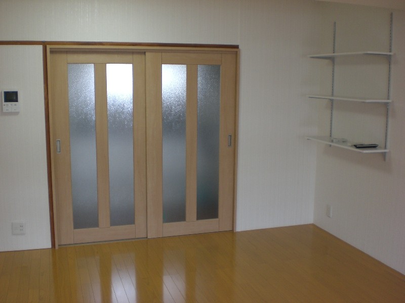 和室2つを洋室1つにし、また和室内にあった押入れも撤去し、クロスの張替えだけでなく、床もフローリングにしました。和室調の引き戸も洋風に変更し、何もなければ殺風景になるところを、可動棚を付けて、ちょっとしたものをおける空間を作りました。