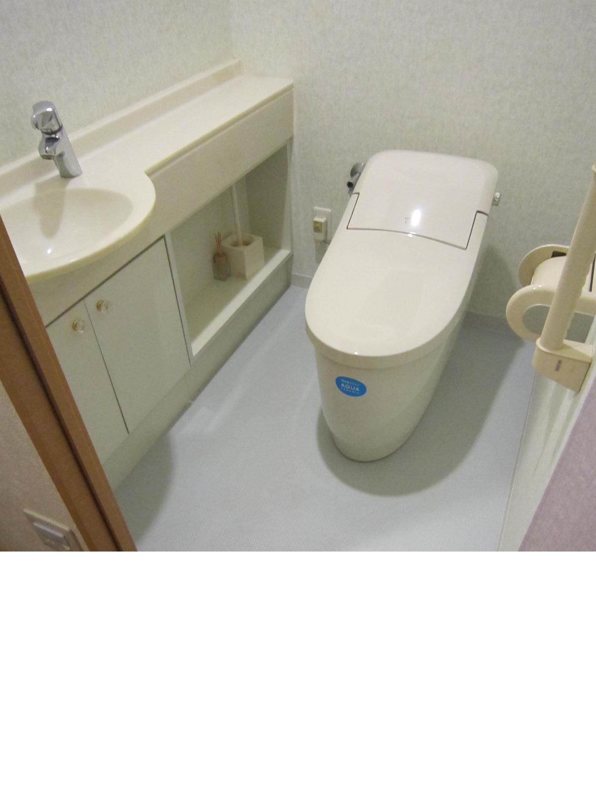 リフォーム前はトイレと手洗い一緒になったものを使用していたがコンパクトなフォルムのトイレにリフォームされました。