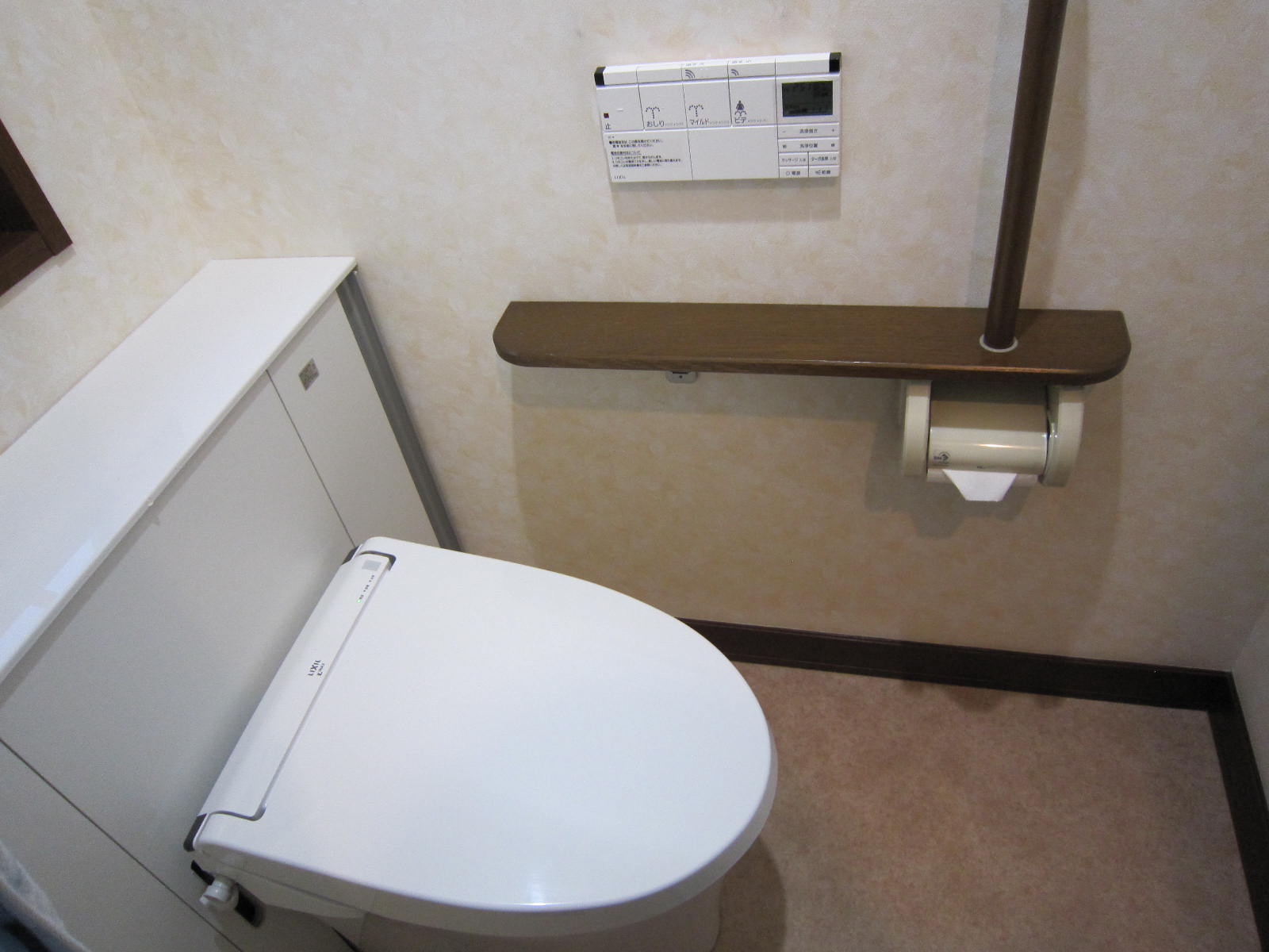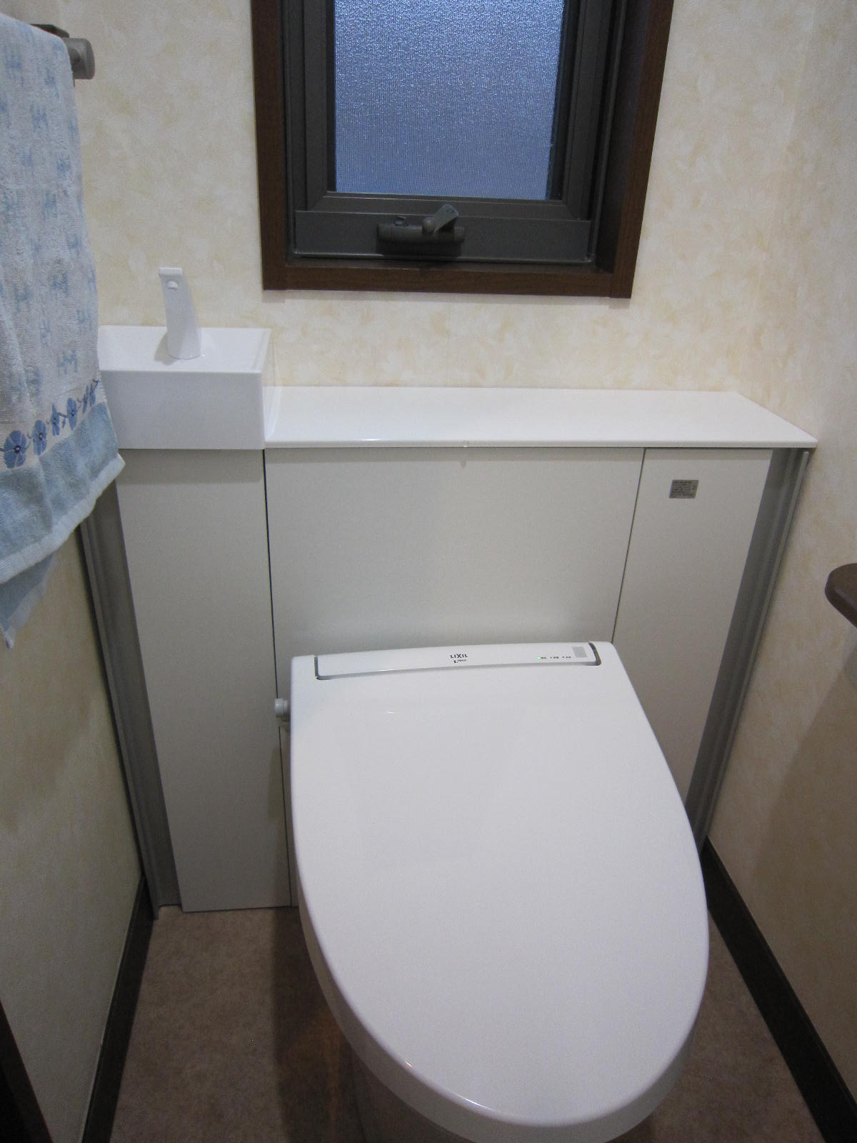 お掃除しにくいタンクまわりをキャビネットで隠しました。トイレまわりを拭くだけでお手入れラクラクです。見た目もすっきりしています。