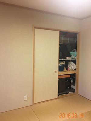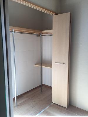 畳をフローリングに変え、 押入れもクローゼットに♪ クローゼットの内部には、 エコカラットを壁全面に張り、 湿気と匂いを防いで快適にしあげました。