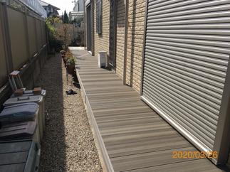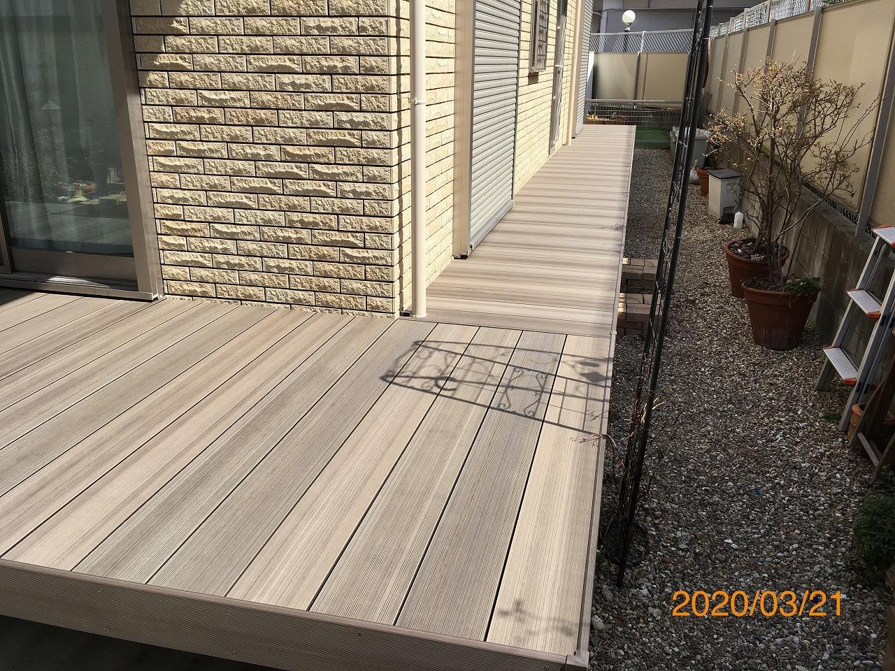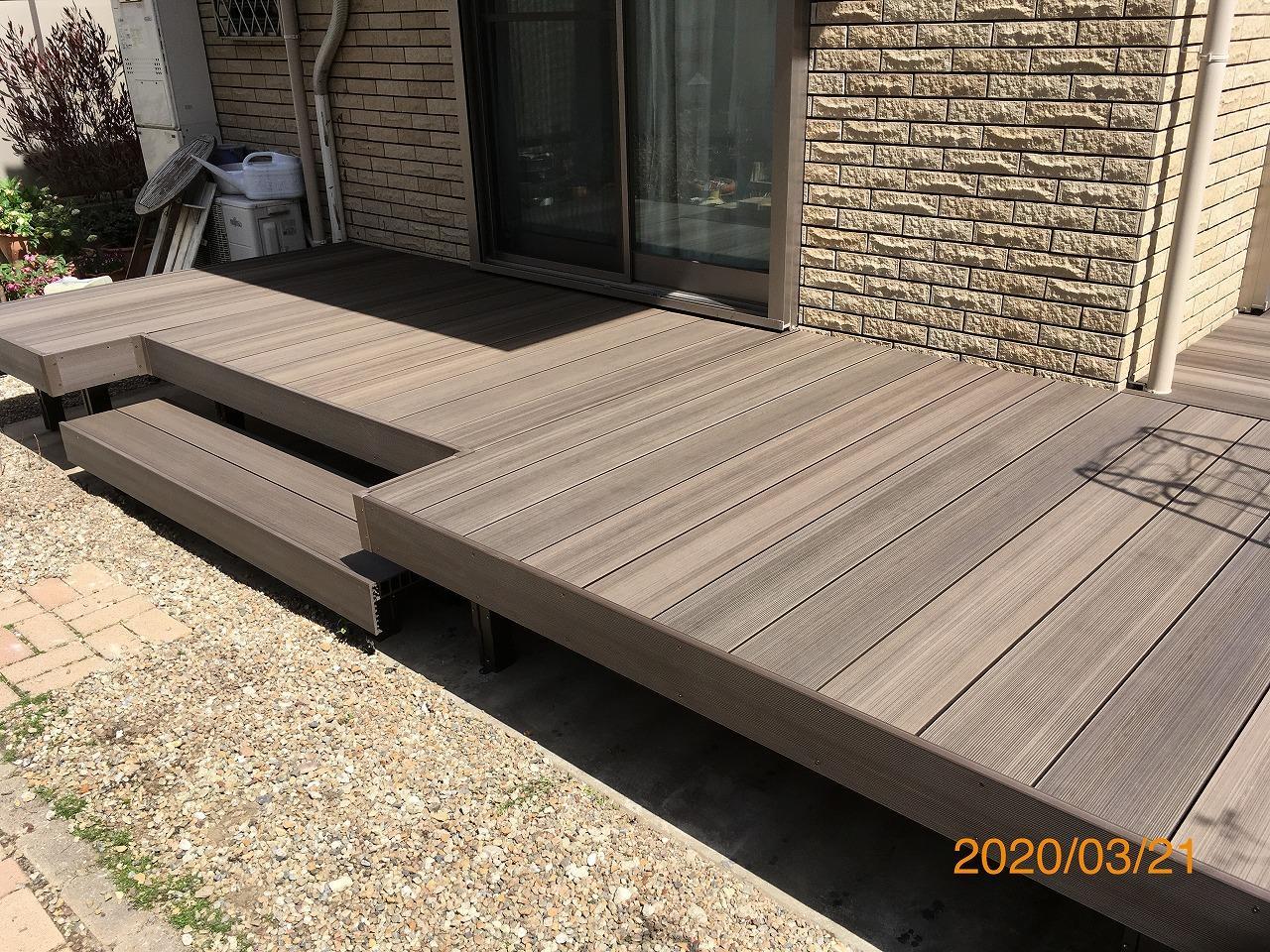 当初、ウリン材を使ってのリフォームをご検討されていたお客様でしたが、定期的なメンテナンスをしてもいつかは朽ちてしまう天然木の最強代打である「樹ら楽ステージ/木彫」の現物サンプルをご覧になられ、「これなら許せるかも」とご選定いただきました。
