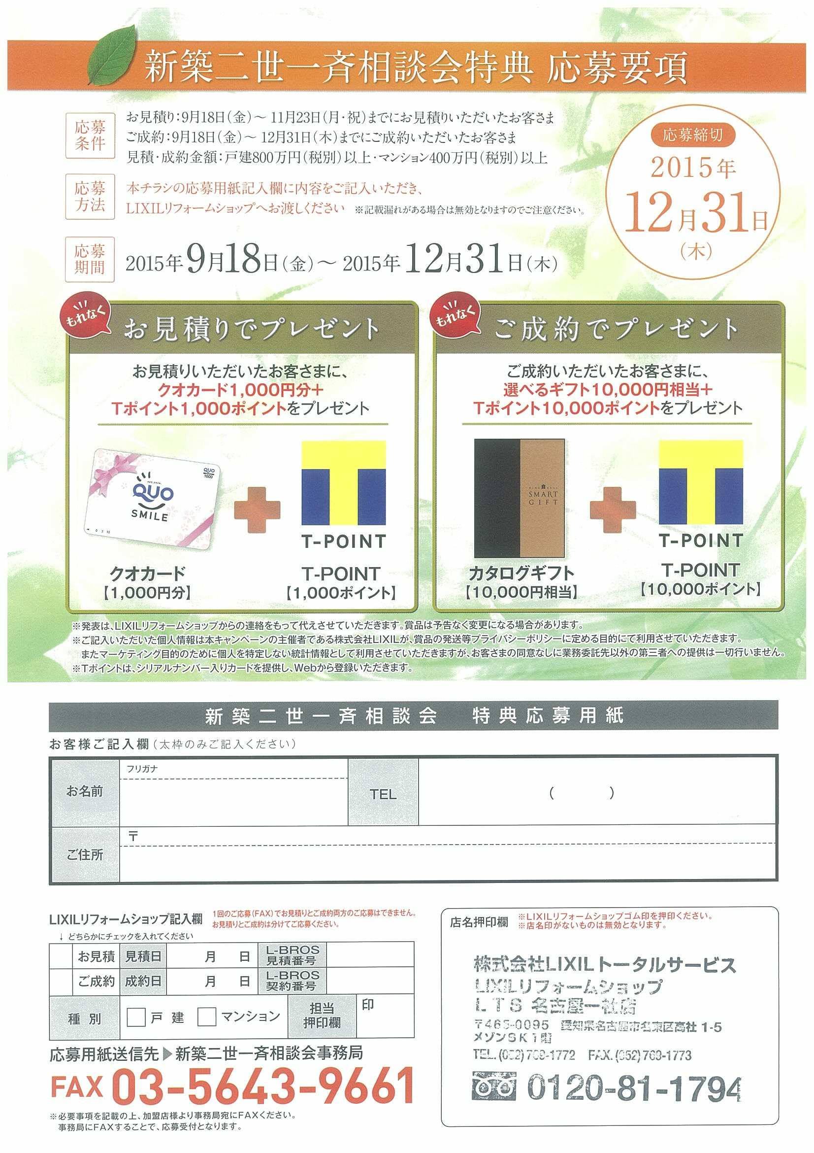 新築二世一斉相談会特典応募要項は下記をご覧ください。