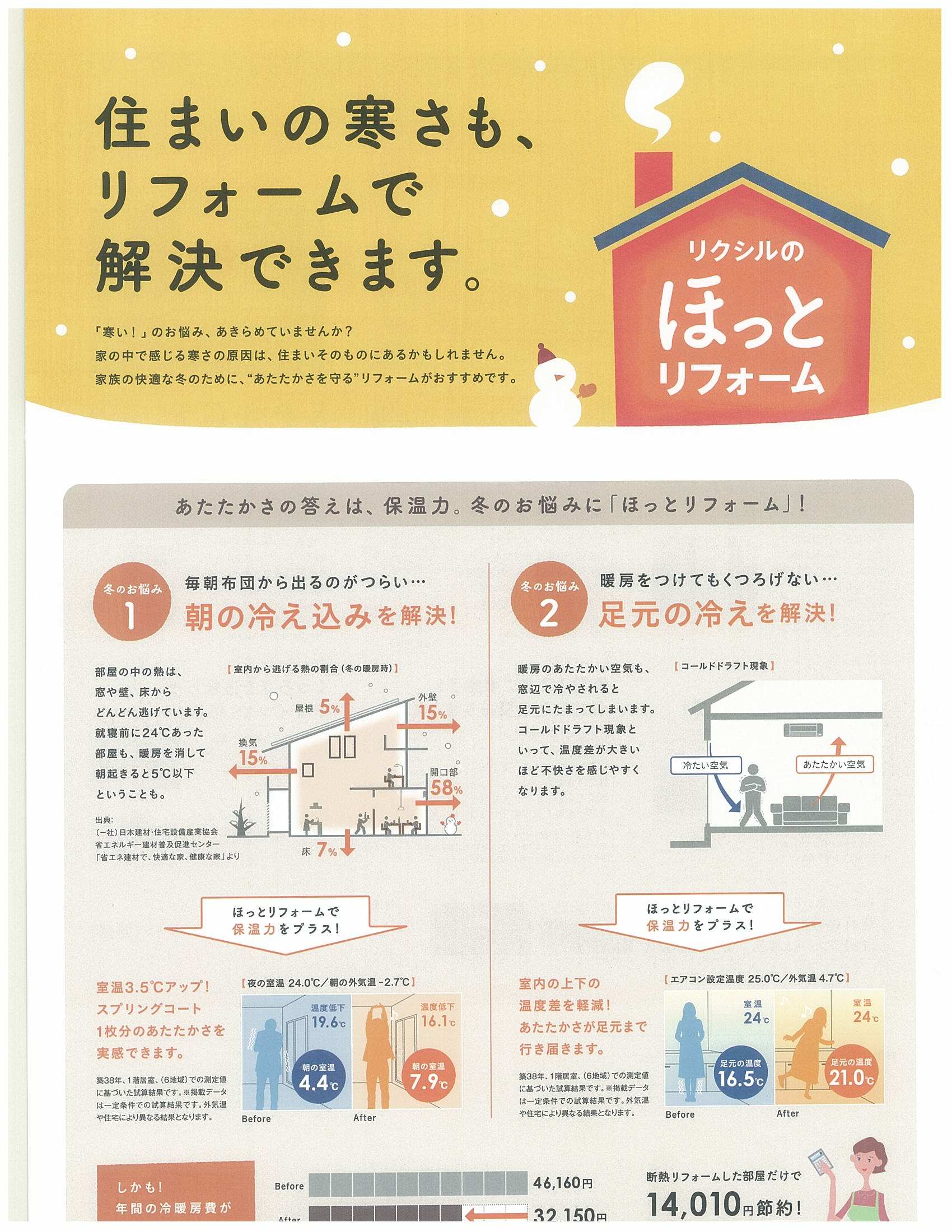 リビングや寝室を「ほっと」に! → 断熱改修工法(ココエコ)