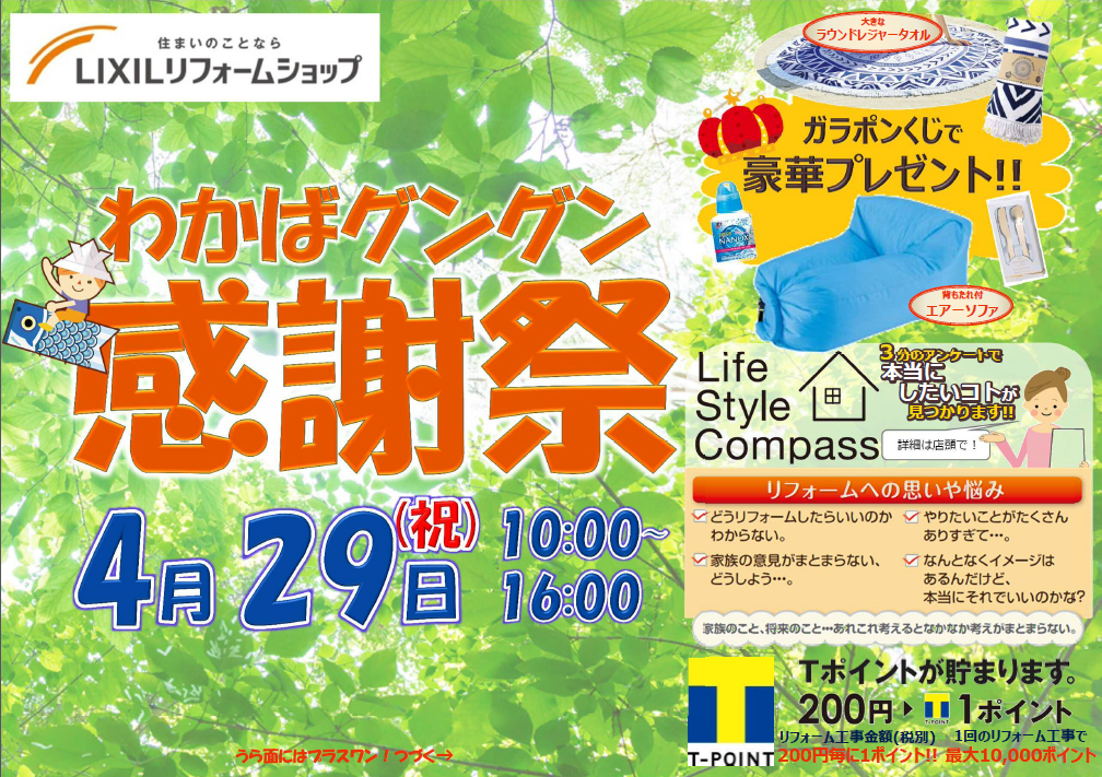 4月29日(祝)一日限りの「わかばグングン感謝祭」を開催いたします。