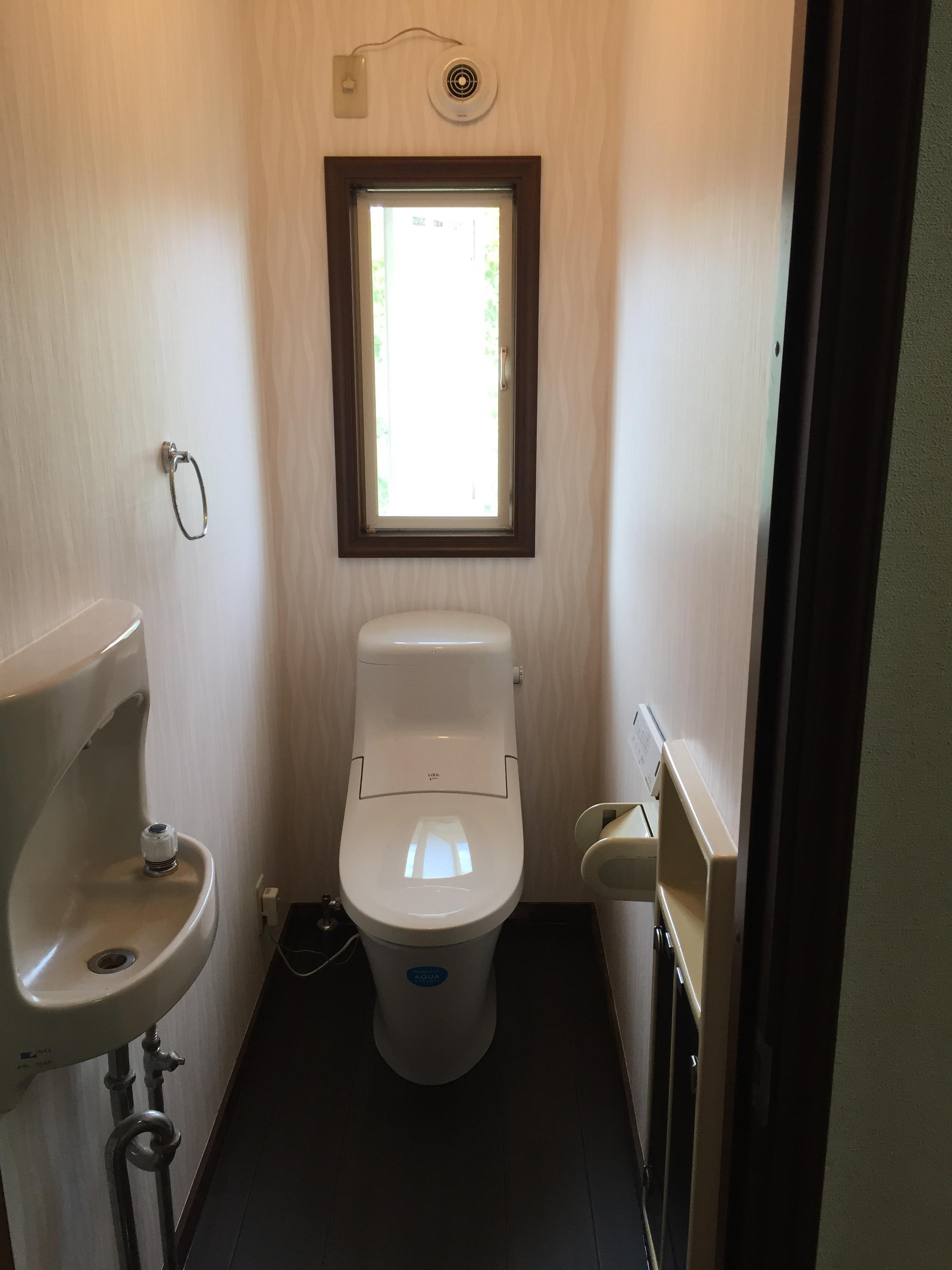 こちらはLIXIL≪アメージュZ≫に取替いたしました。スッキリしたフォルムで、便器の縁がないのでお掃除らくらくです。