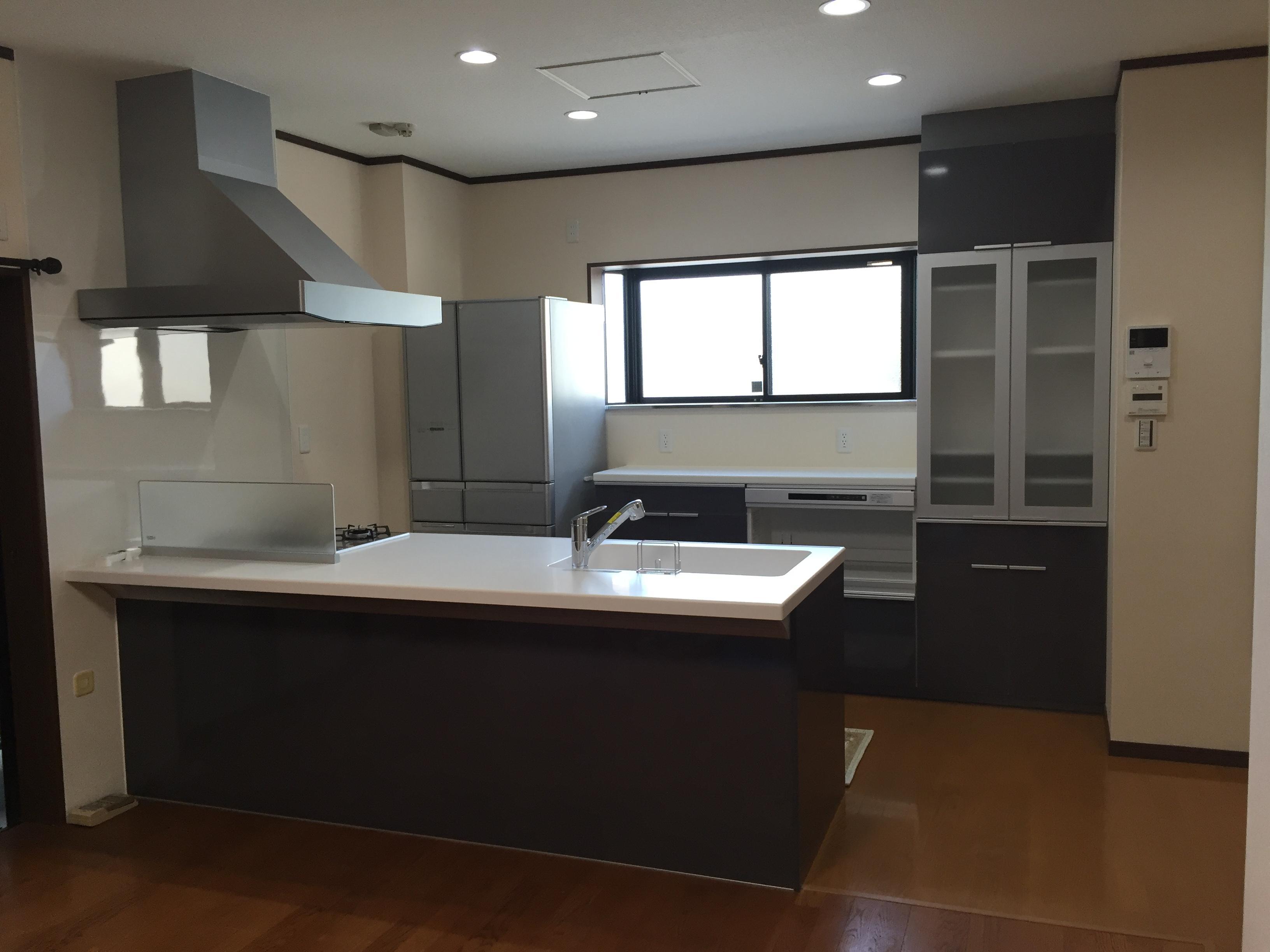 I型キッチンからガラリと雰囲気を変え、オープンキッチンに。天井からの棚を無くし、視界を遮らないキッチンにしました。調理中もご家族の様子を見ながら過ごせるようになりました。