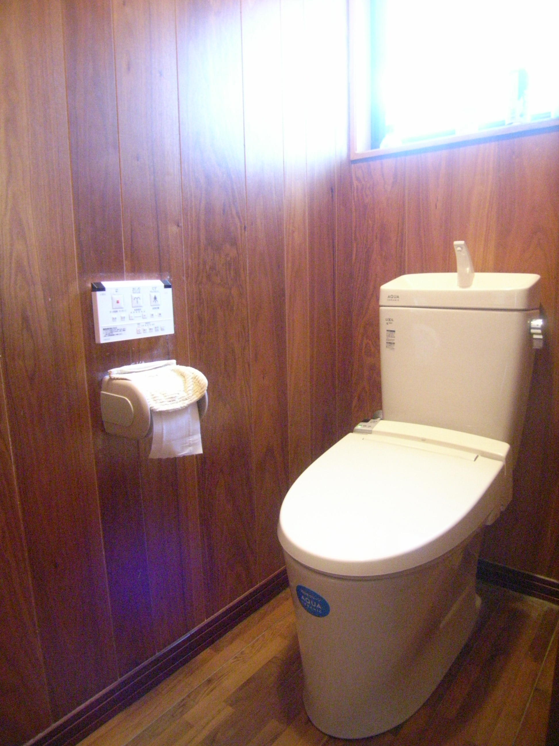 シャワートイレが故障しトイレの取替をご希望でした。以前はスッキリとしたシルエットの一体型タイプをご利用でしたが、今回は便器、タンク、シャワートイレが個別になっているアメージュZにいたしました。