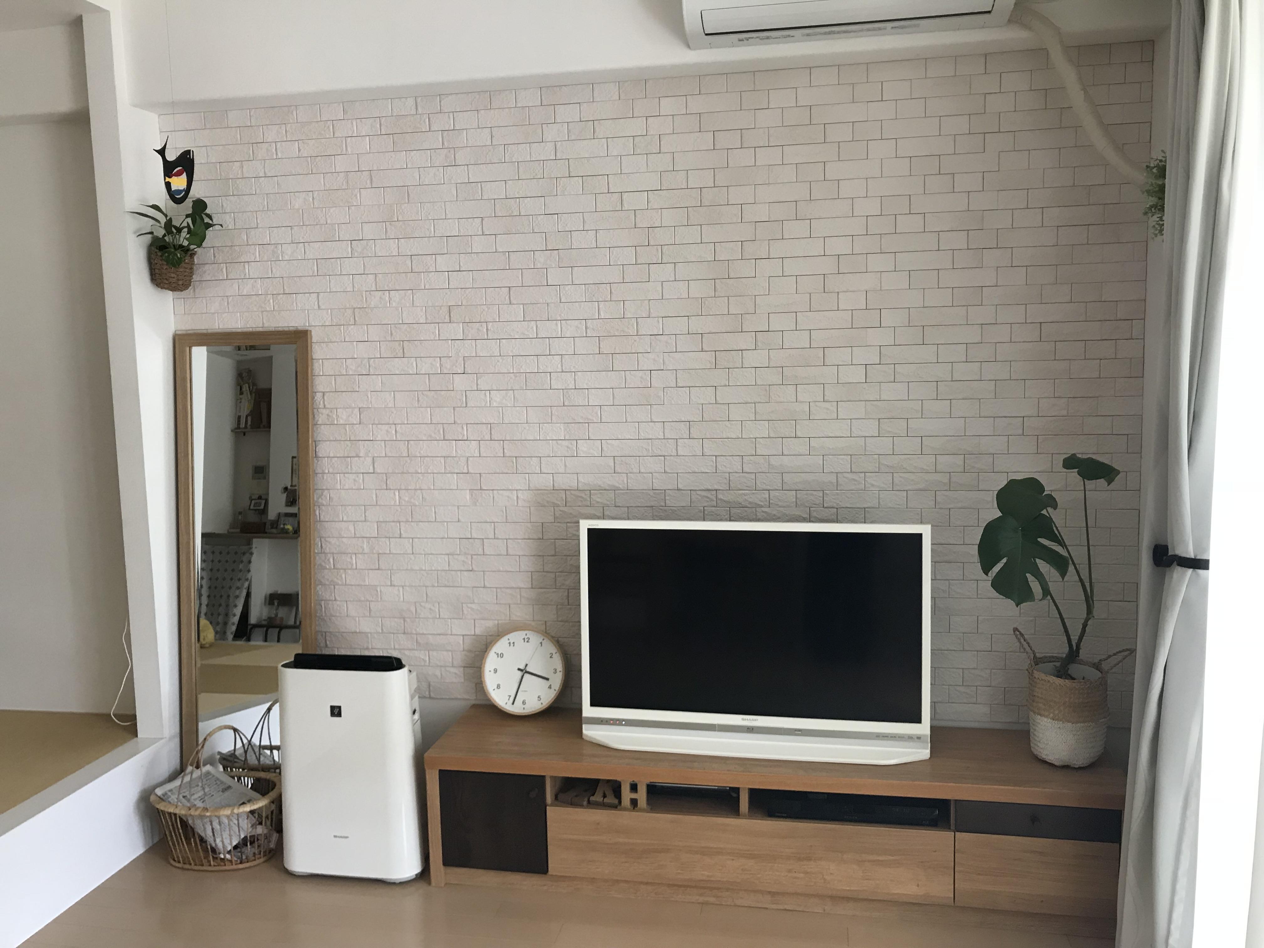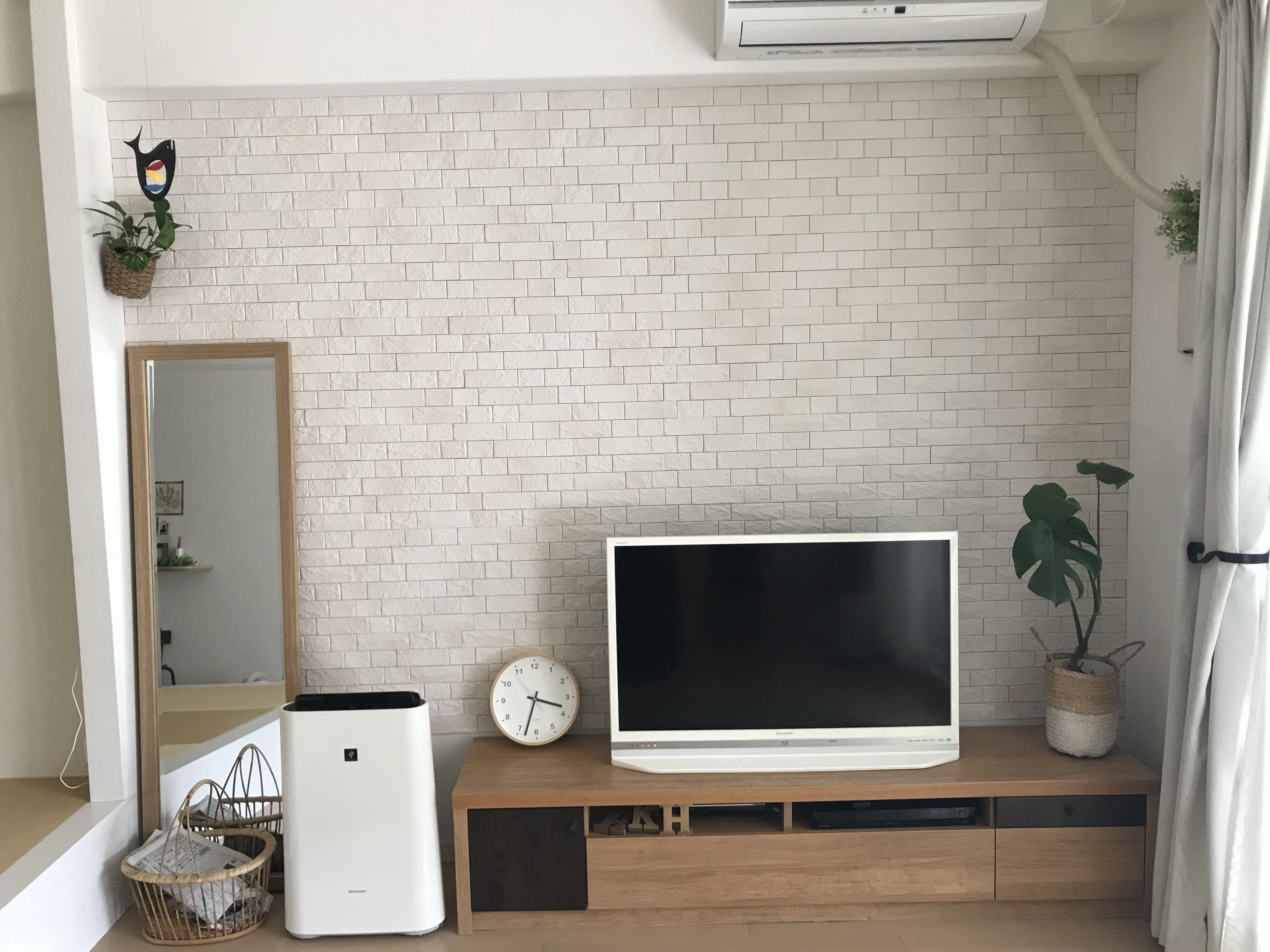 リビングのテレビボード背面にエコカラット、グラナスヴィストを貼りました!また,玄関も同様にエコカラットを貼りました。防湿性、消臭効果もあり、いいこと尽くしです。【LIXIL エコカラット:グラナスヴィスト/ホワイト】