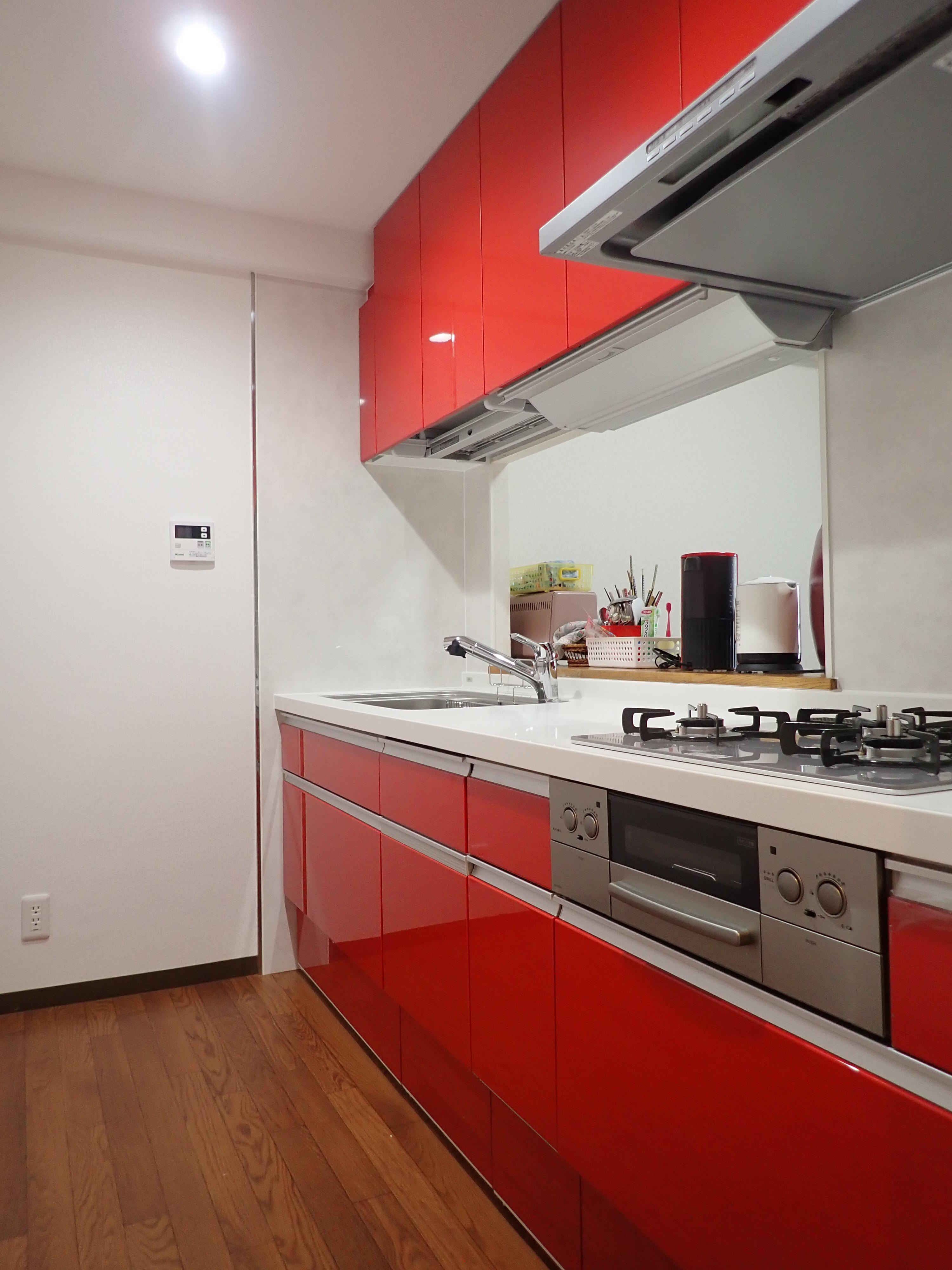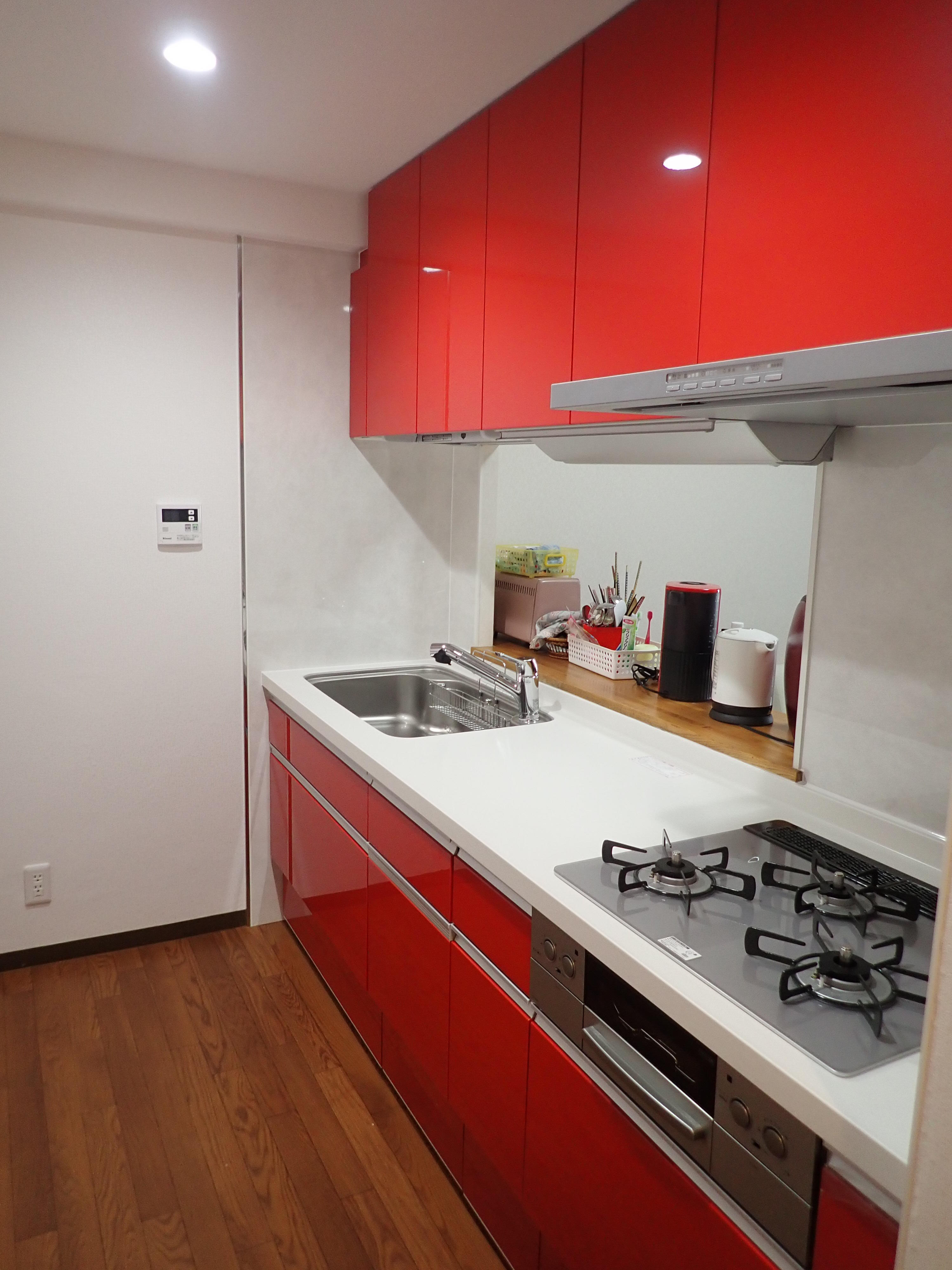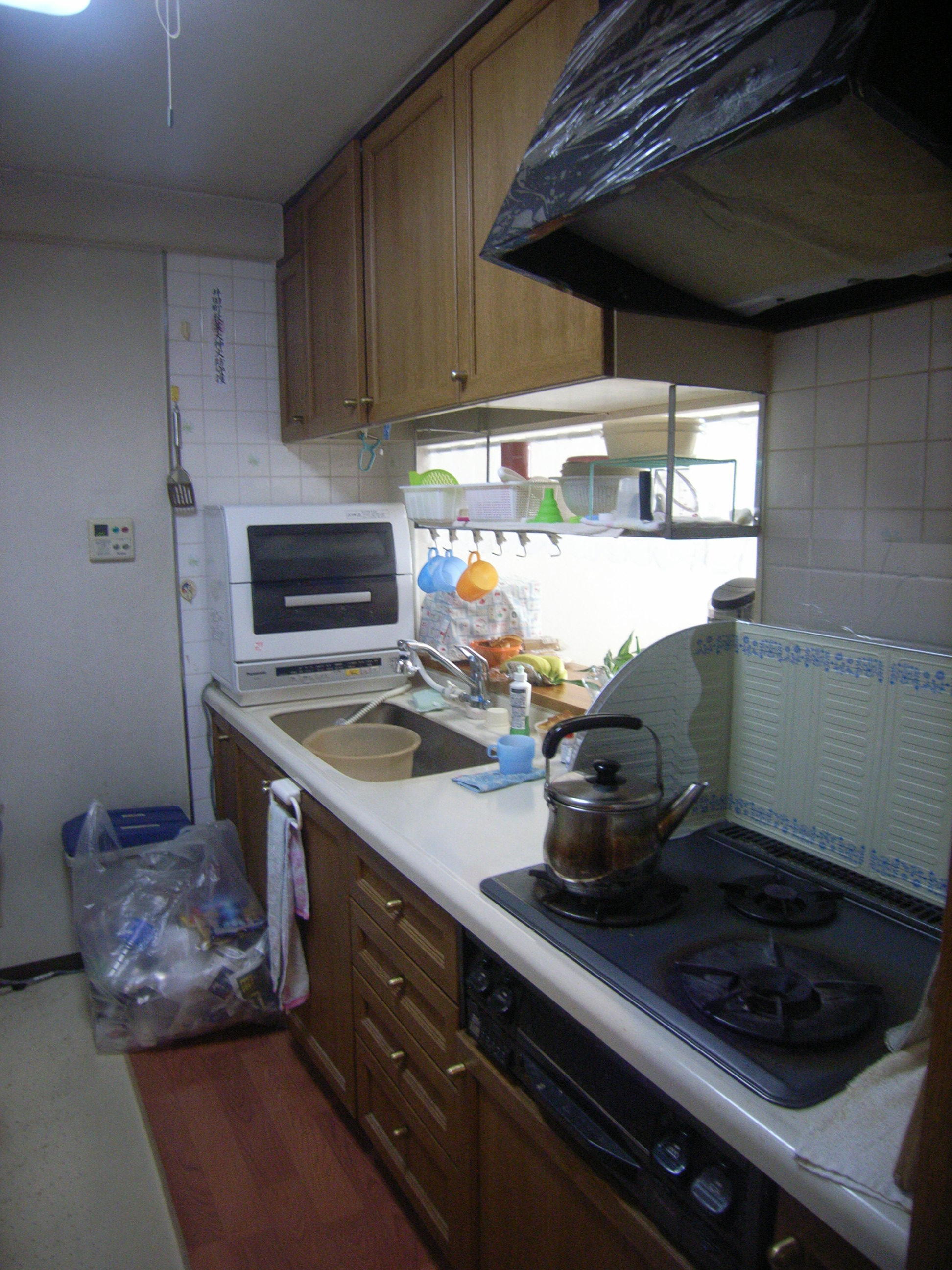 永年お住まい(マンション)のキッチンの機器も古くなりリフォームをご検討。狭い従来のシステムキッチンスは収納スペースも少なく食器洗浄機もカウンター上にありキッチンがより狭く悩まれていました。 今回、収納量豊富なシステムキッチン、リシェルSIをご提案。食器洗乾燥機を卓上タイプからビルトインタイプに。吊戸棚はダウンウォールを採用し手が届き難く使いづらかった収納スペースを有効活用できるようになりました。また、キッチンの収納をすべてスライドストッカーにしたことで収納量が増えました。【キッチン・・・リシェルSI I型2400】