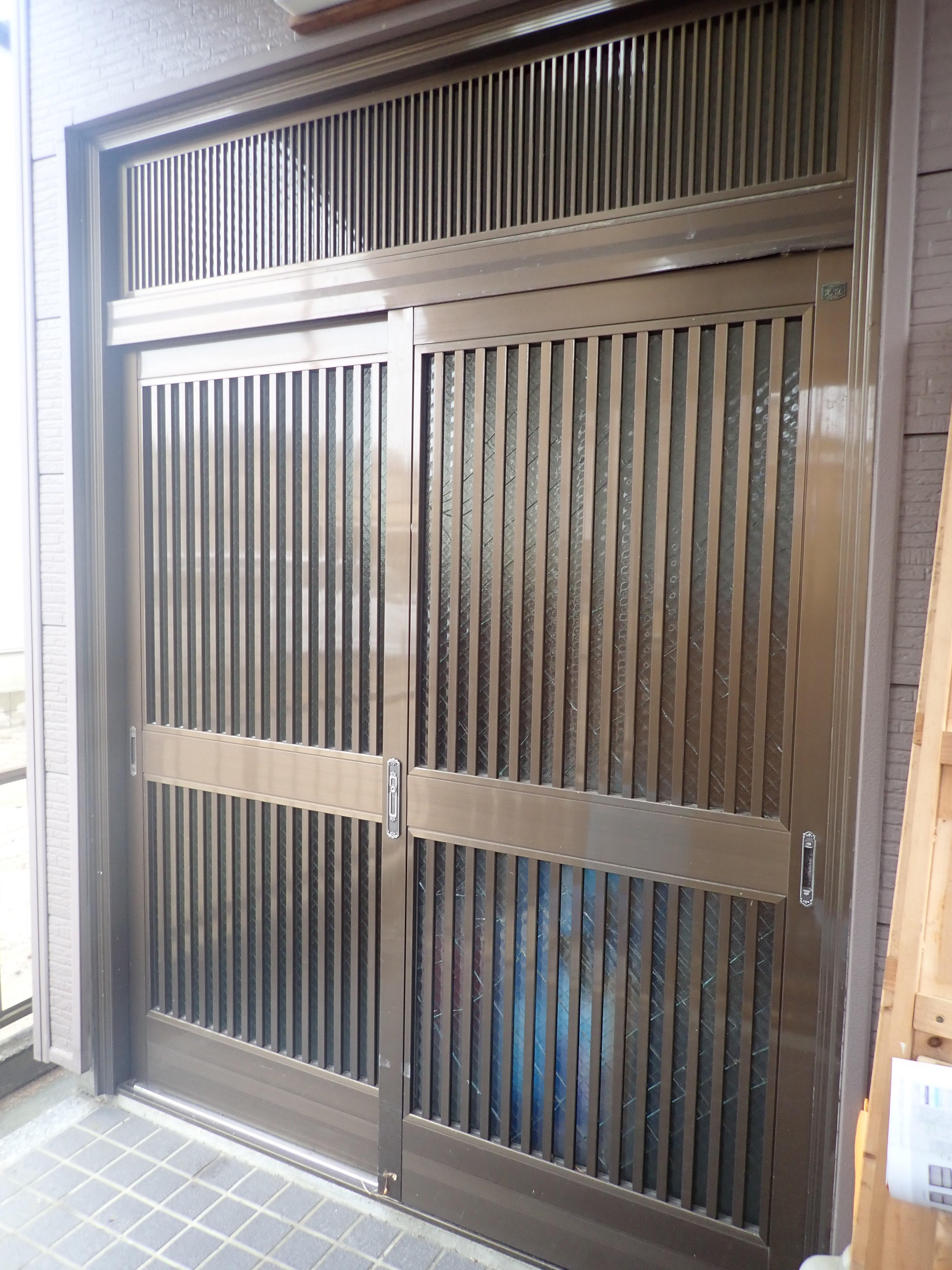 ランマ部を取り払い、採光部の大きい縦通しデザインで明るく開放感のあるドアになりました。【LIXIL リシェント55型】