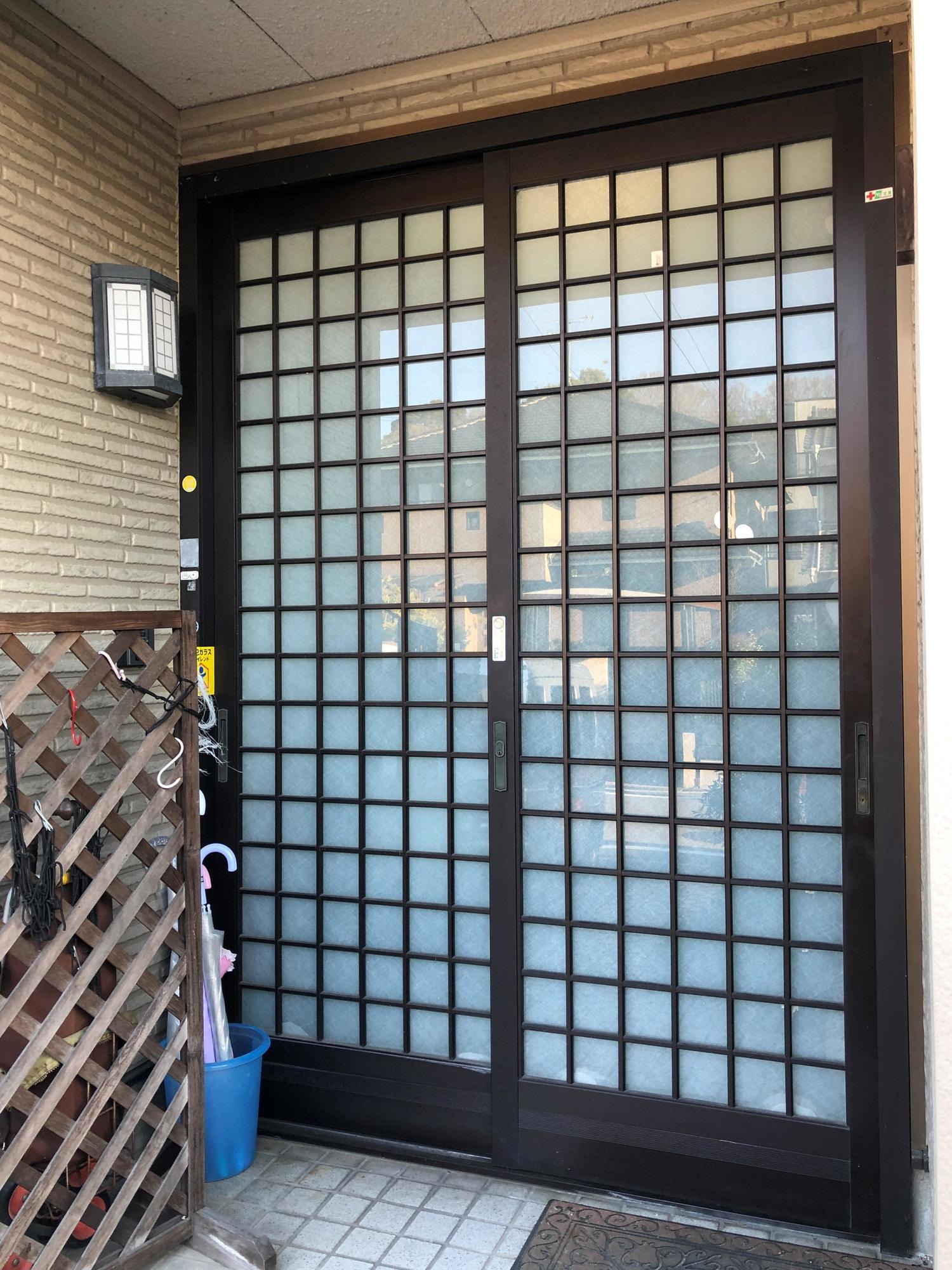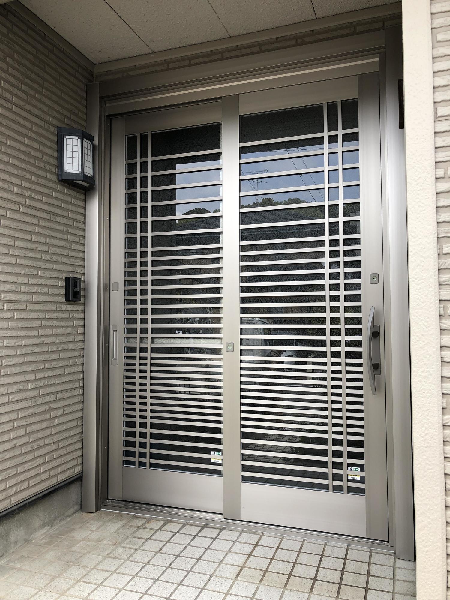 玄関引戸が古くなり、扉が重くなってしまったのと防犯性の高い物にしたいとのご要望でした。 黒いカラーの玄関引戸だったため色を変えるのに迷っていらっしゃいましたが、シュミレーション資料を見ていただきガラッと印象の変わるカラーにいたしました。 外壁の色とも相性が良く、玄関の印象が大きく変わりました! 【LIXIL玄関ドア リシェントⅢ 61型 漣格子/シャイングレー】