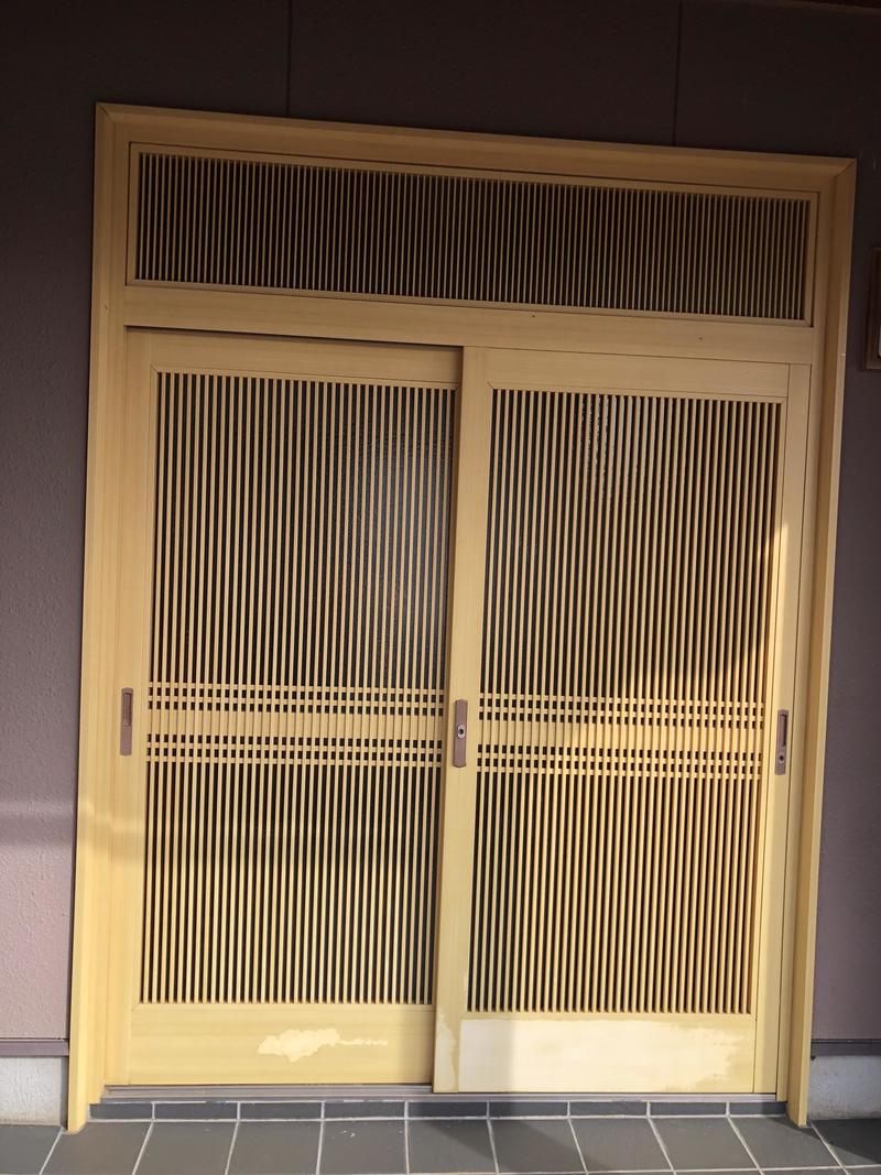 以前より少し濃い色を選定していますが、重厚感のある良い色になりました! 玄関引戸も戸の部分だけをお取替えいたしました。