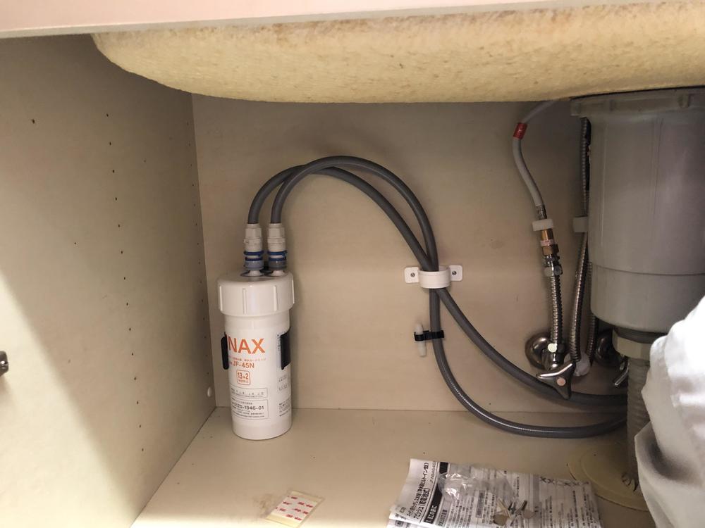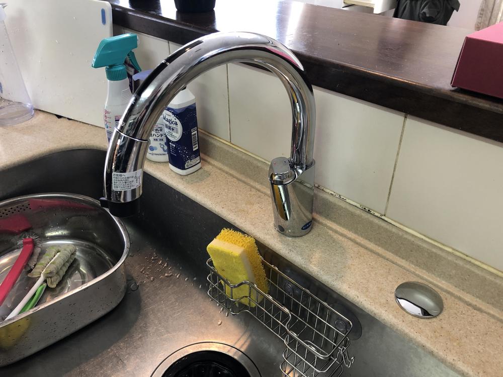 古くなったキッチン水栓をタッチレスの自動水栓に取替しました。 電源工事の必要がない電池式のタイプです。 もともと使用されていた浄水器は撤去し、キッチン水栓一体型のビルトインにすることでシンク周りのお手入れも楽になり、見た目もすっきりしました!【キッチン水栓 LIXIL/ナビッシュ(乾電池式)JF-NB464SX】
